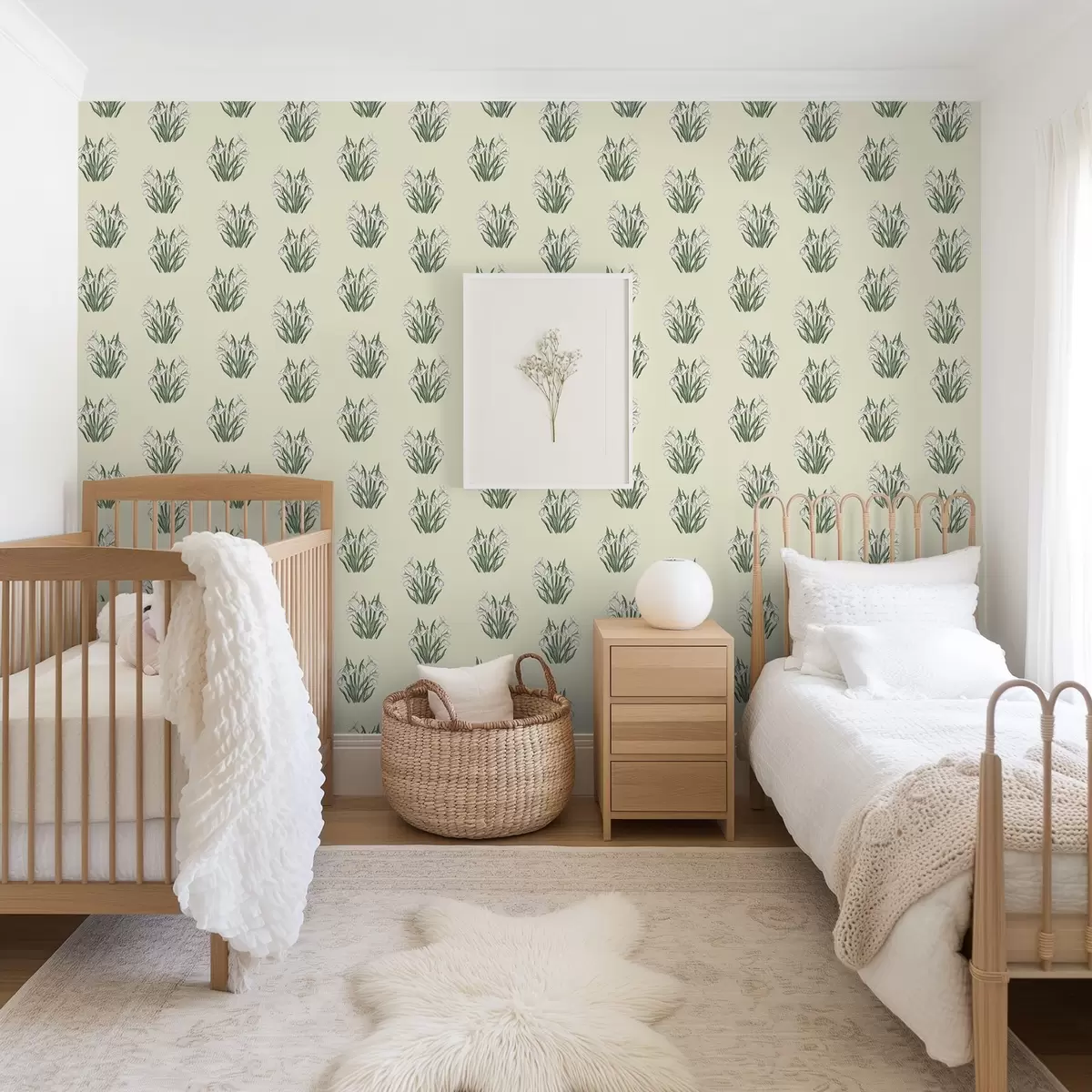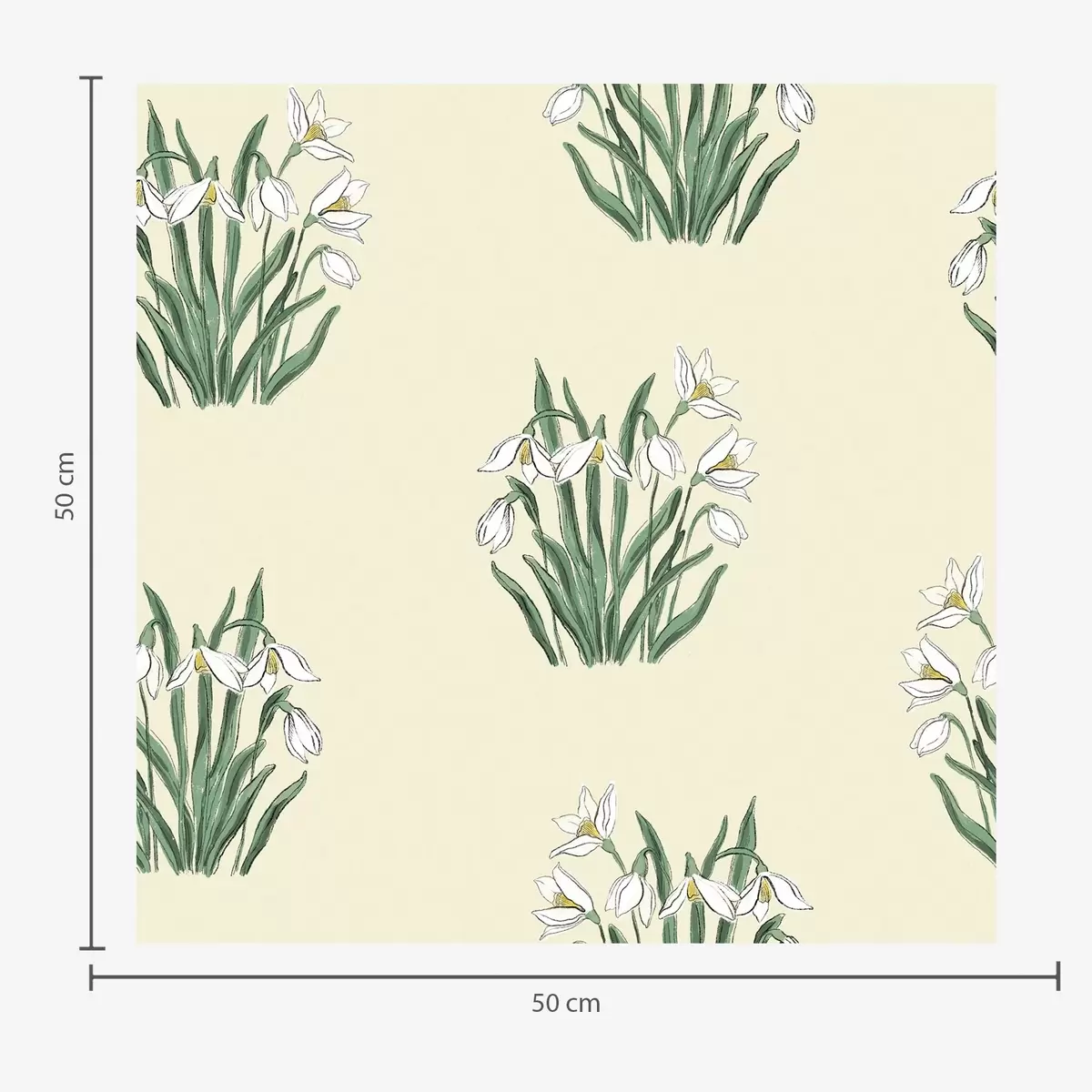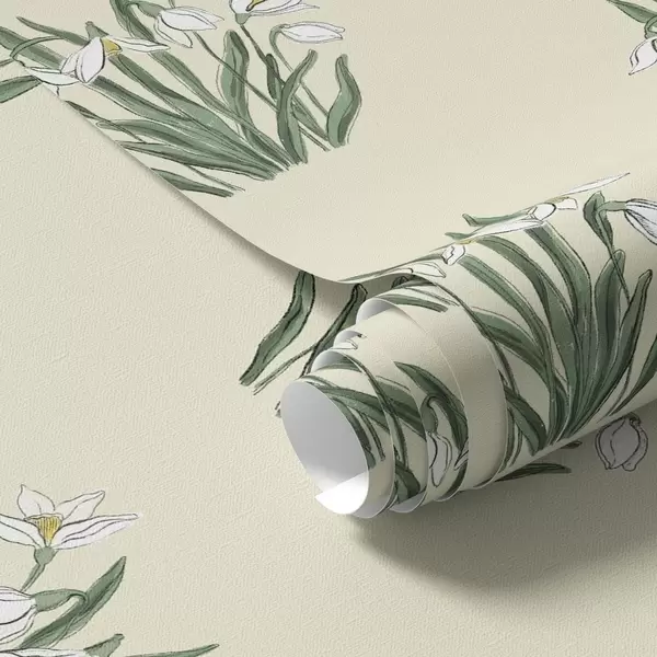 Tapete Schneeglöckchen mit grünen Blättern auf cremefarbenem Hintergrund Nr. a00651v2