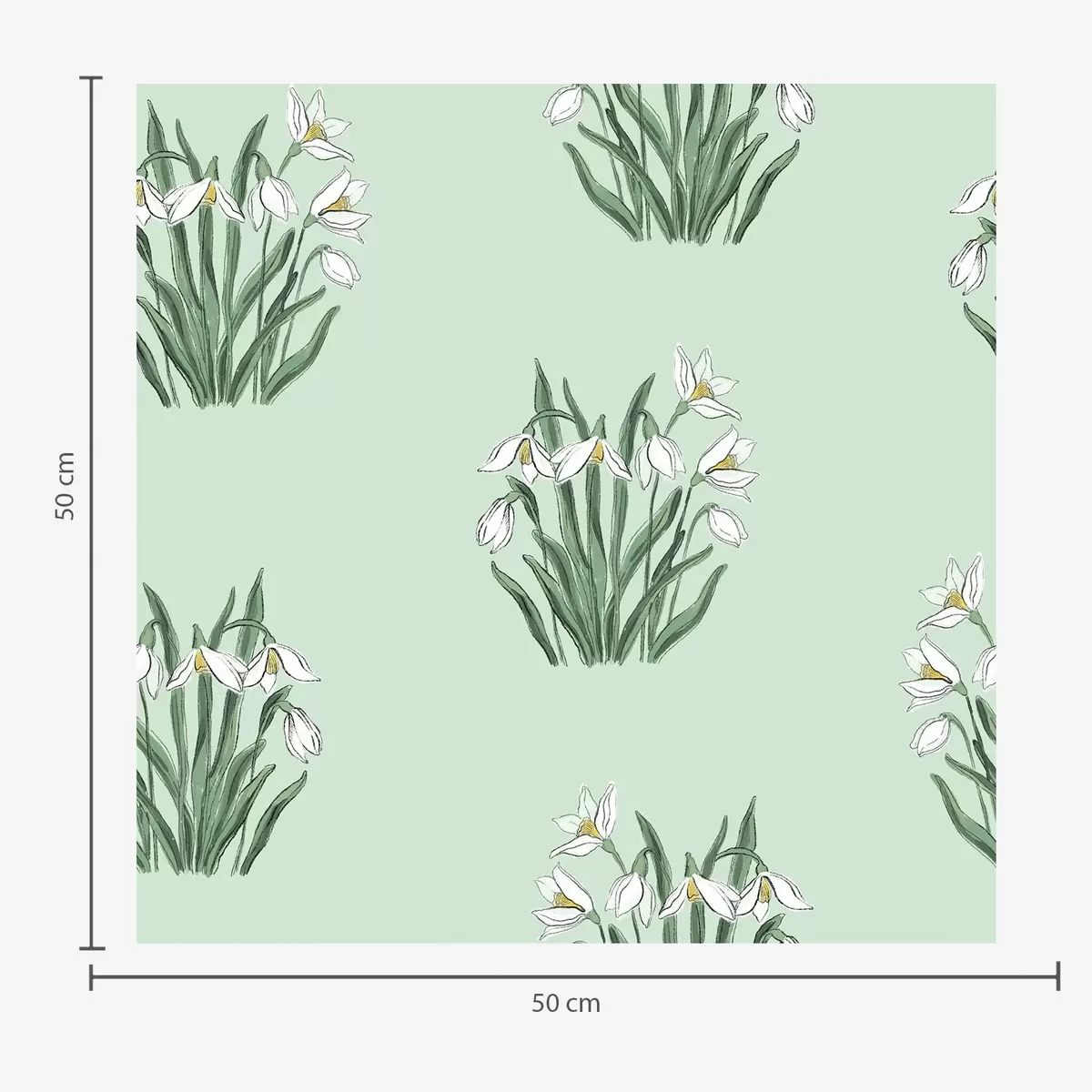Tapete Schneeglöckchen mit grünen Blättern auf warmem gelbem Hintergrund Nr. a00651v3