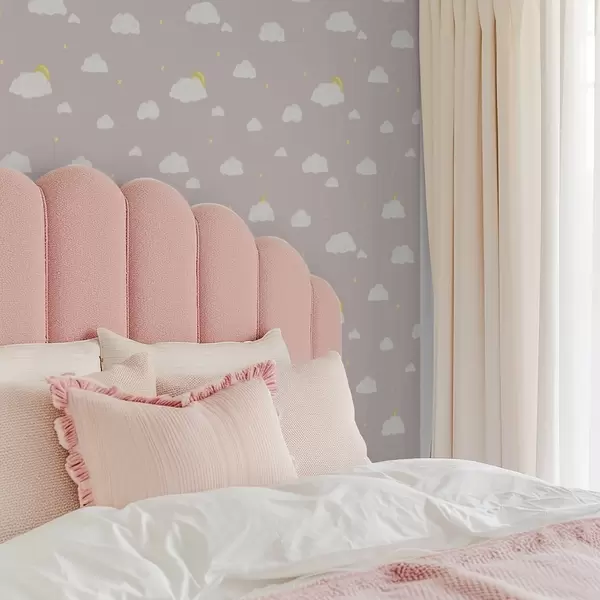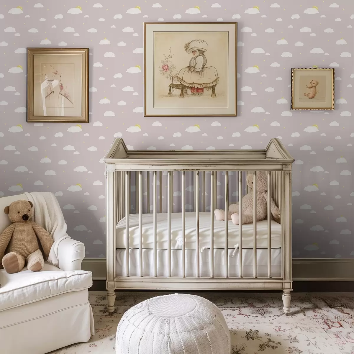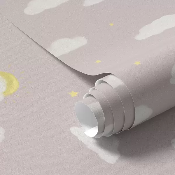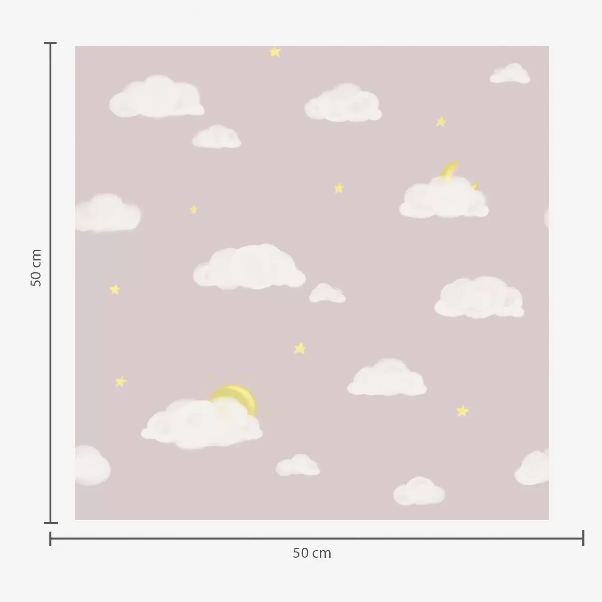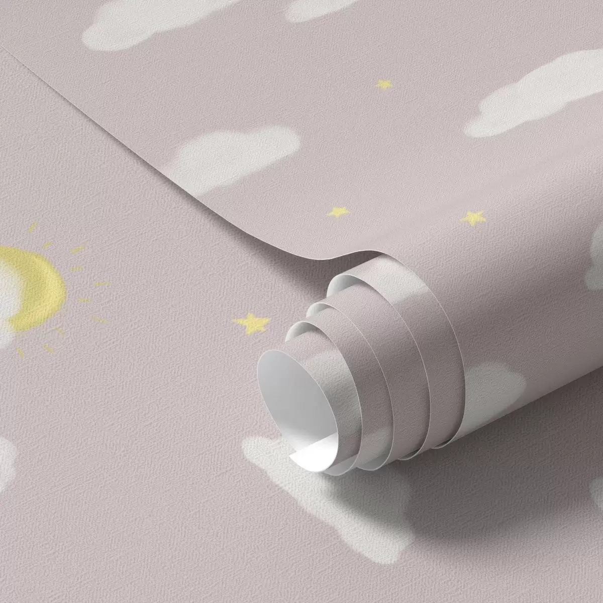 Tapete Weiche Wolken, Sterne und Sonne auf einem rosafarbenen grauen Hintergrund Nr. a00652v2
