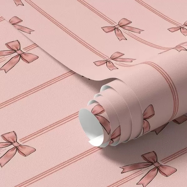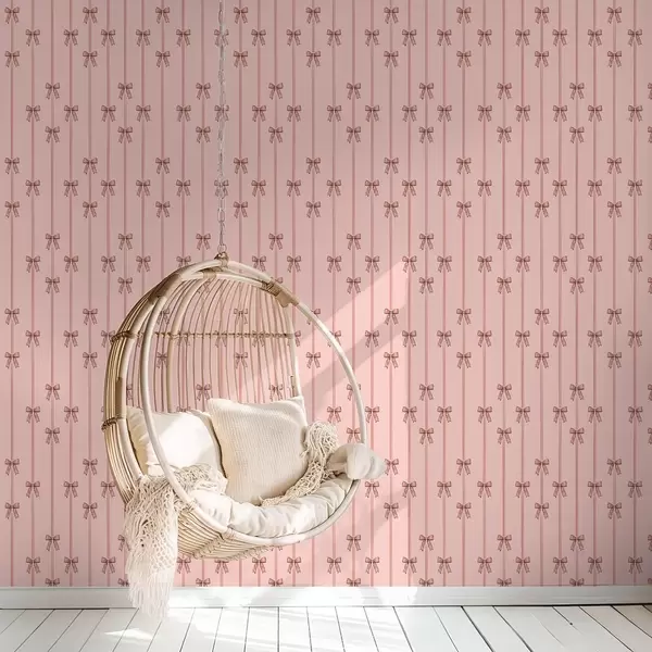 Tapete Vertikale Bänder mit Schleifen, korallenrosa Hintergrund Nr. a00653v3