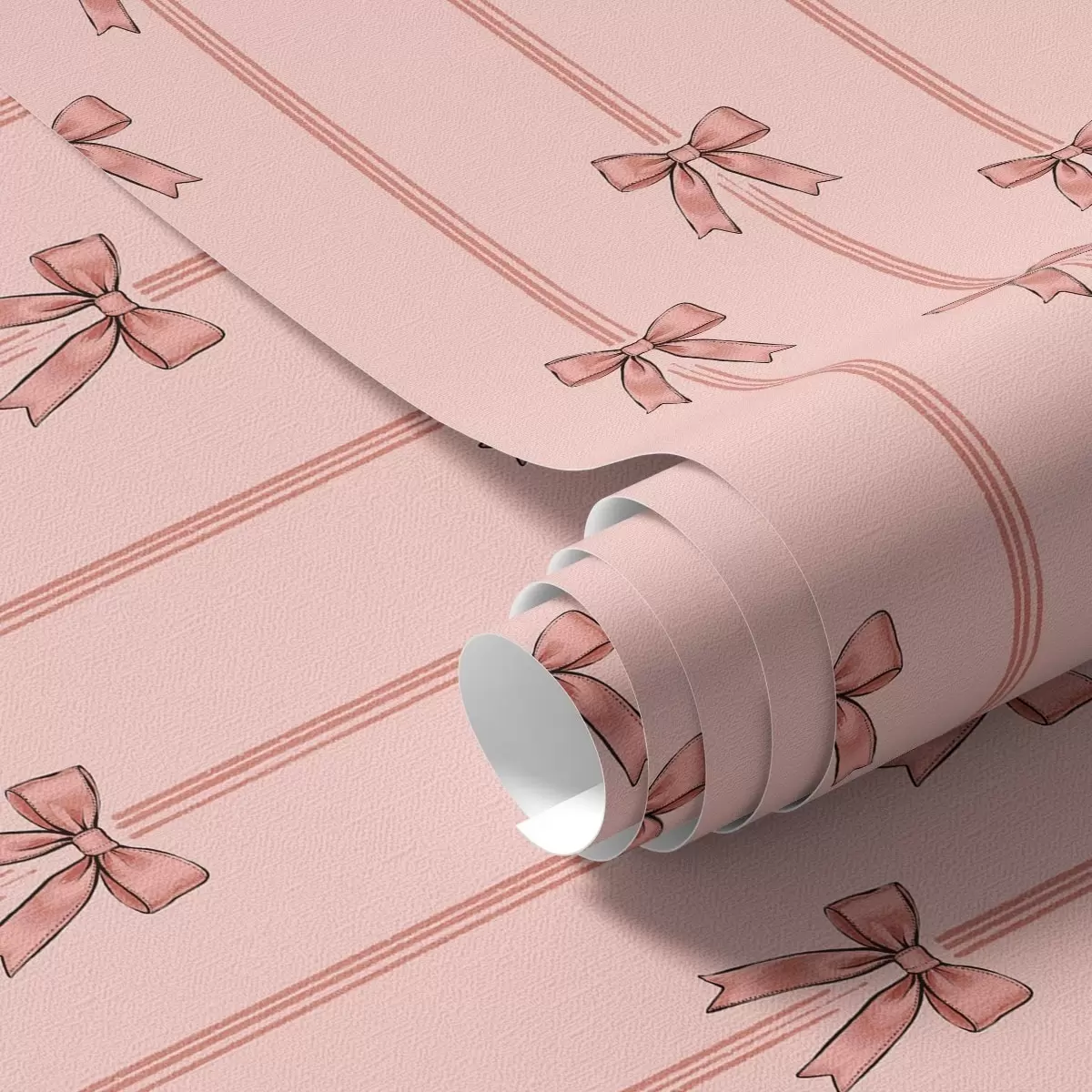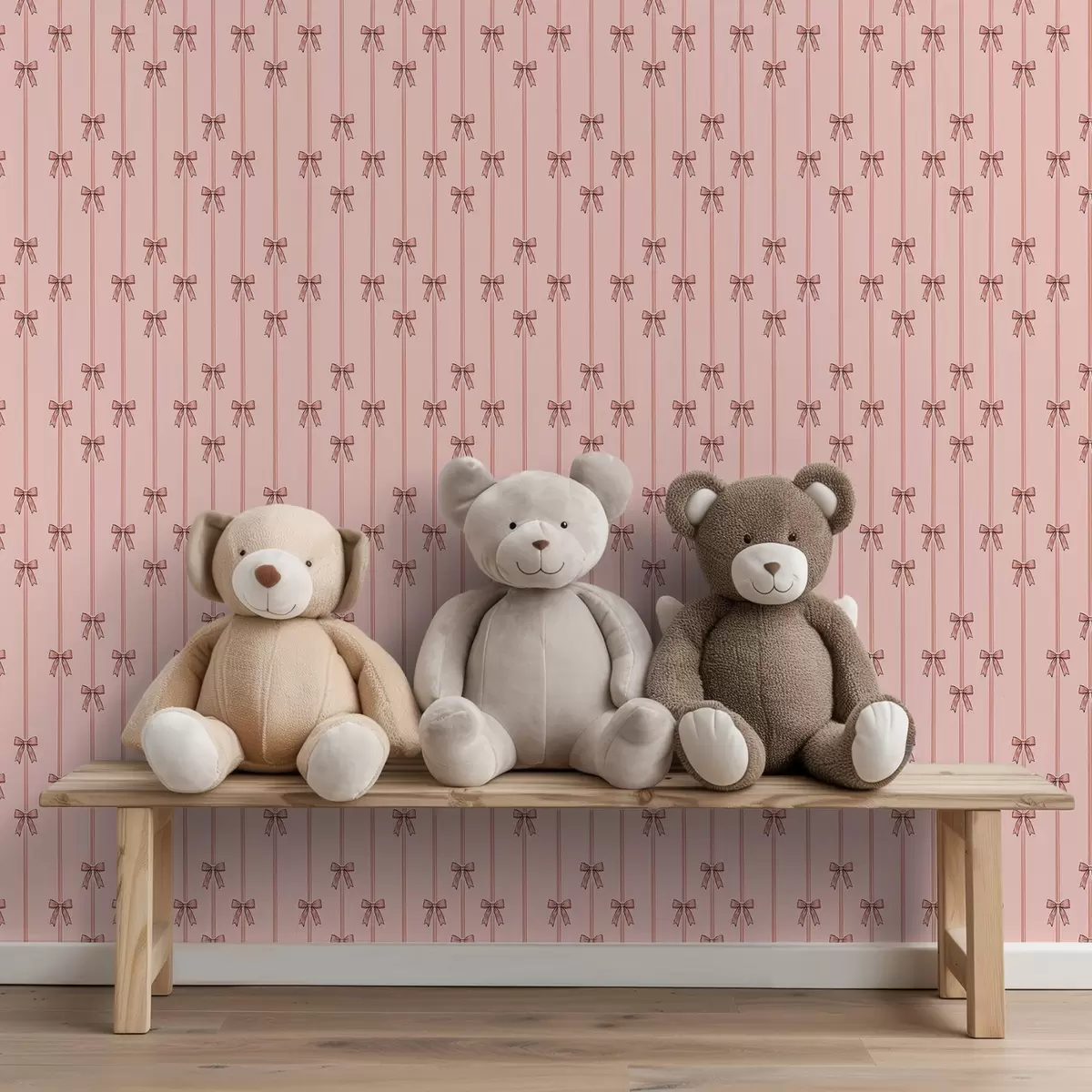 Tapete Vertikale Bänder mit Schleifen, korallenrosa Hintergrund a00653v3