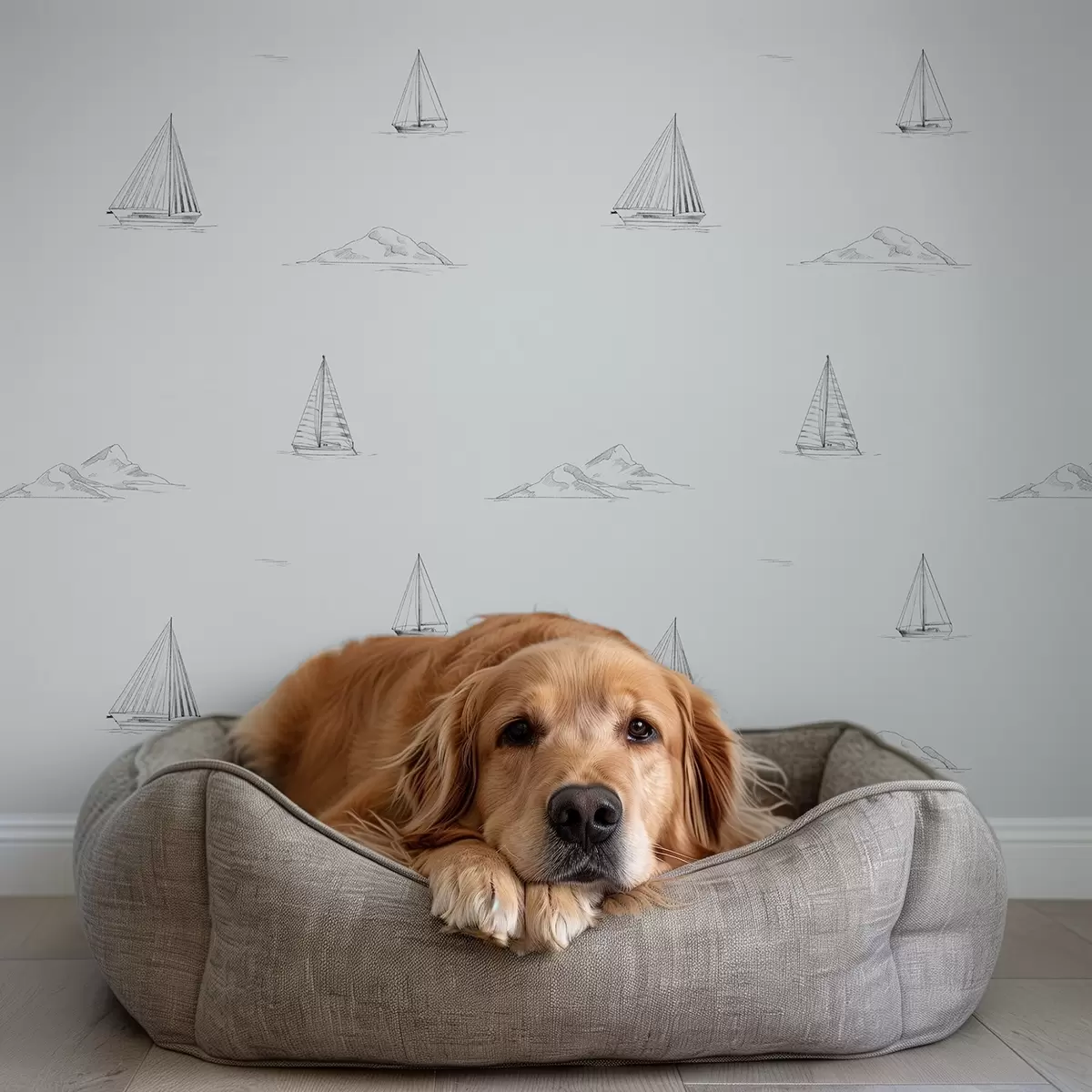 Tapete Skizzen von Yachten und Inseln, kühler blaugrauer Hintergrund Nr. a00654