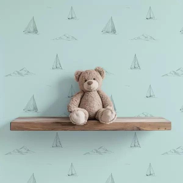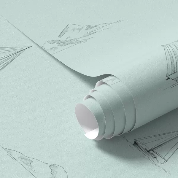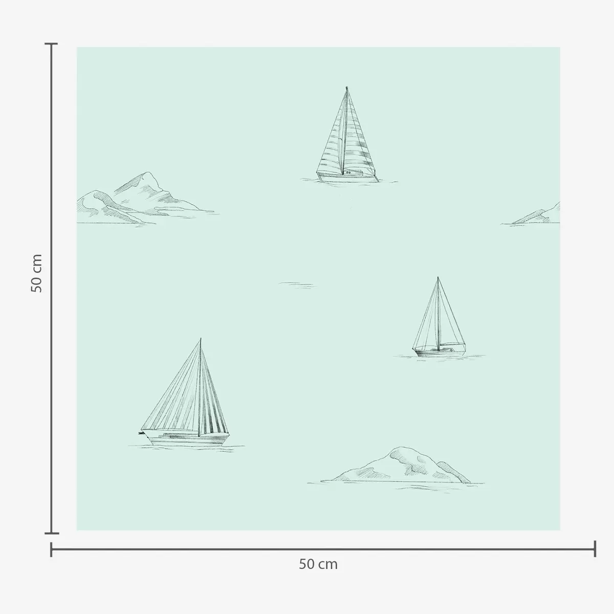Tapete Skizzen von Yachten und Inseln, mintgrüner Hintergrund Nr. a00654v4