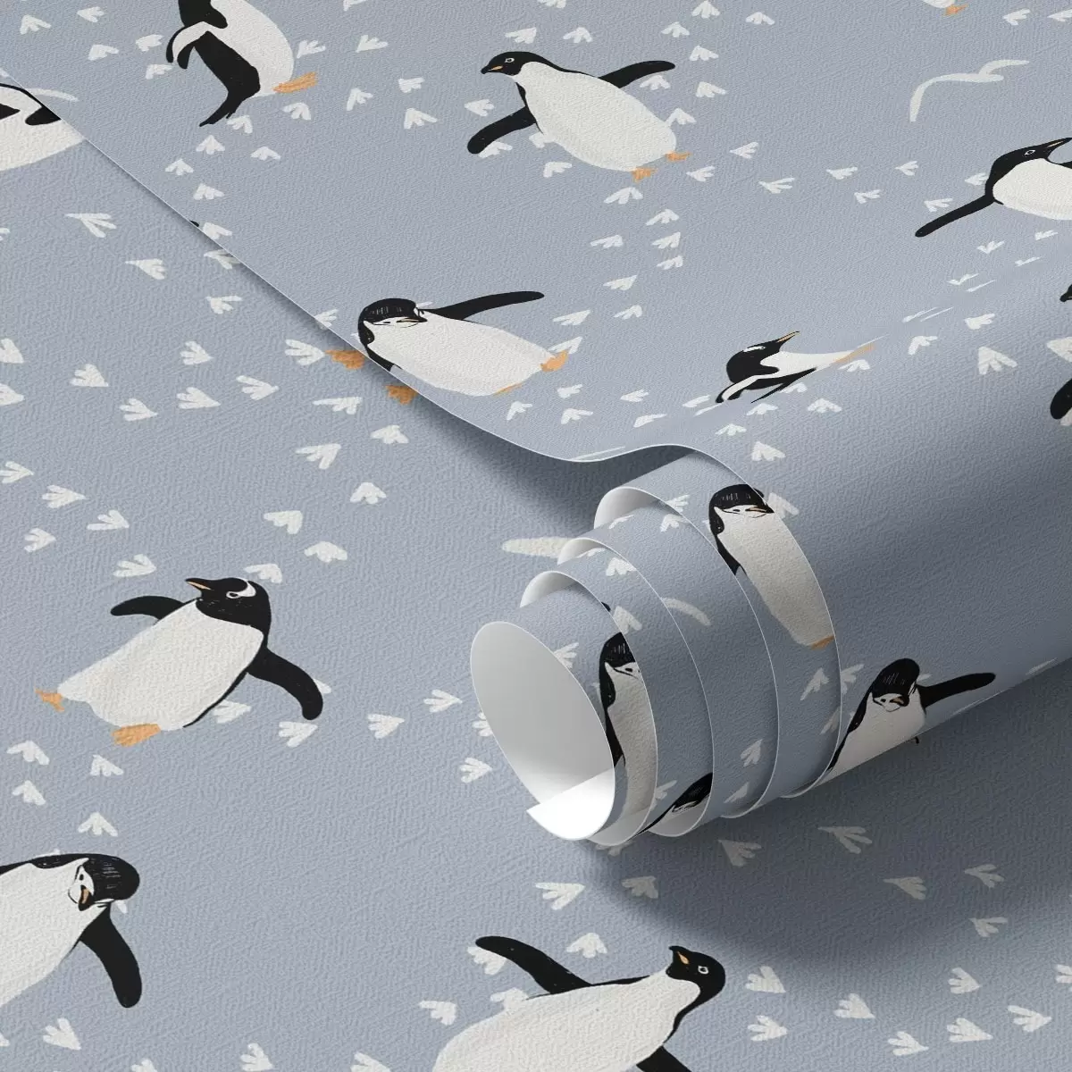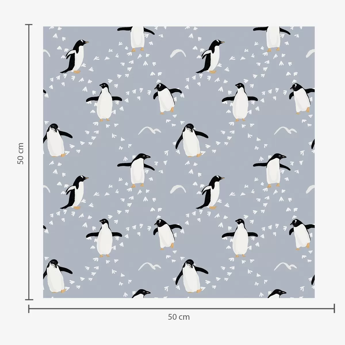 Tapete Pinguine auf grau-blauem Hintergrund mit Fußabdrücken Nr. a00655