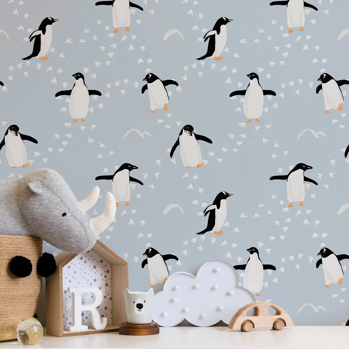 Tapete Pinguine auf hellblauem Hintergrund, Rhythmus der Fußspuren Nr. a00655v2