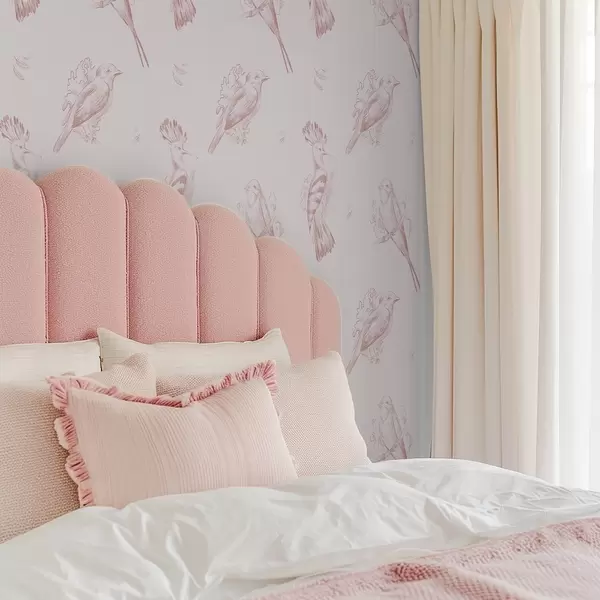 Tapete Vogel-Toile: Skizzen von Vögeln, zartrosa Hintergrund Nr. a00656