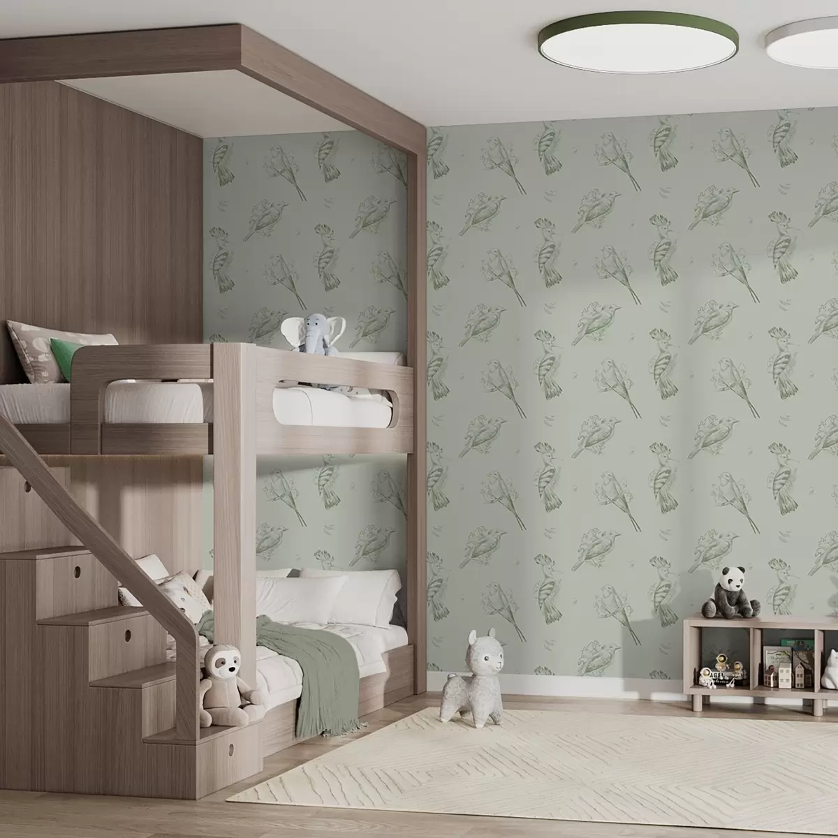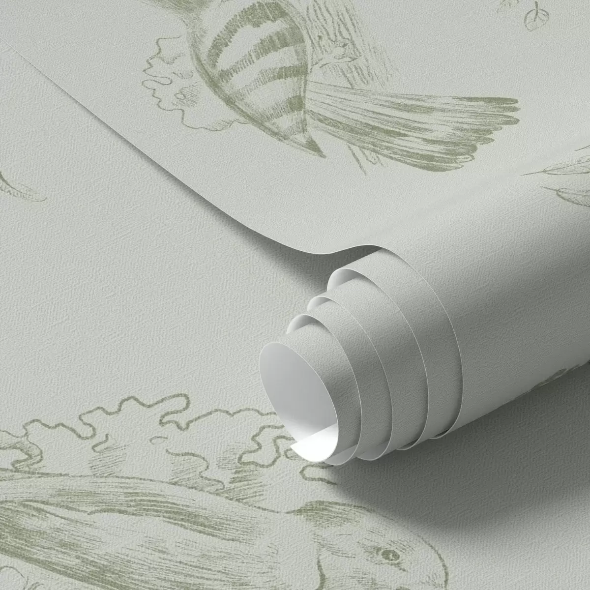 Tapete Vogel-Toile: Skizzen von Vögeln auf graugrünem Hintergrund Nr. a00656v1