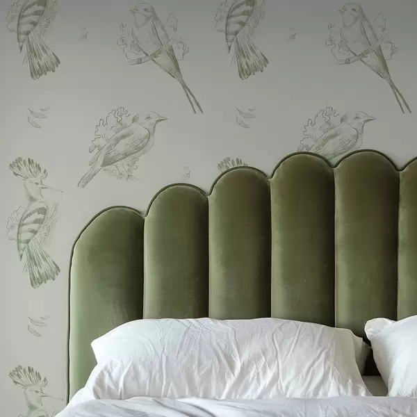 Tapete Vogel-Toile: Skizzen von Vögeln auf graugrünem Hintergrund Nr. a00656v1