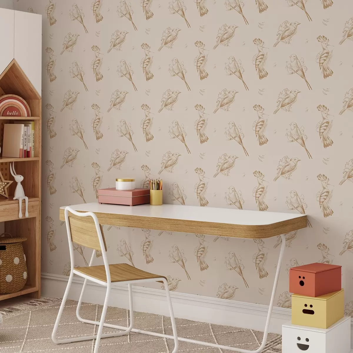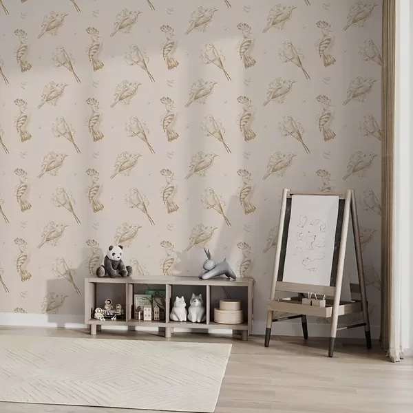 Tapete Vogel-Toile: Skizzen von Vögeln auf warmem Beige Nr. a00656v3