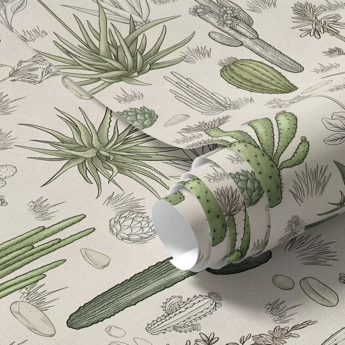Tapete Kakteen und Sukkulenten auf warmem Hintergrund, detailreicher Druck Nr. a00666