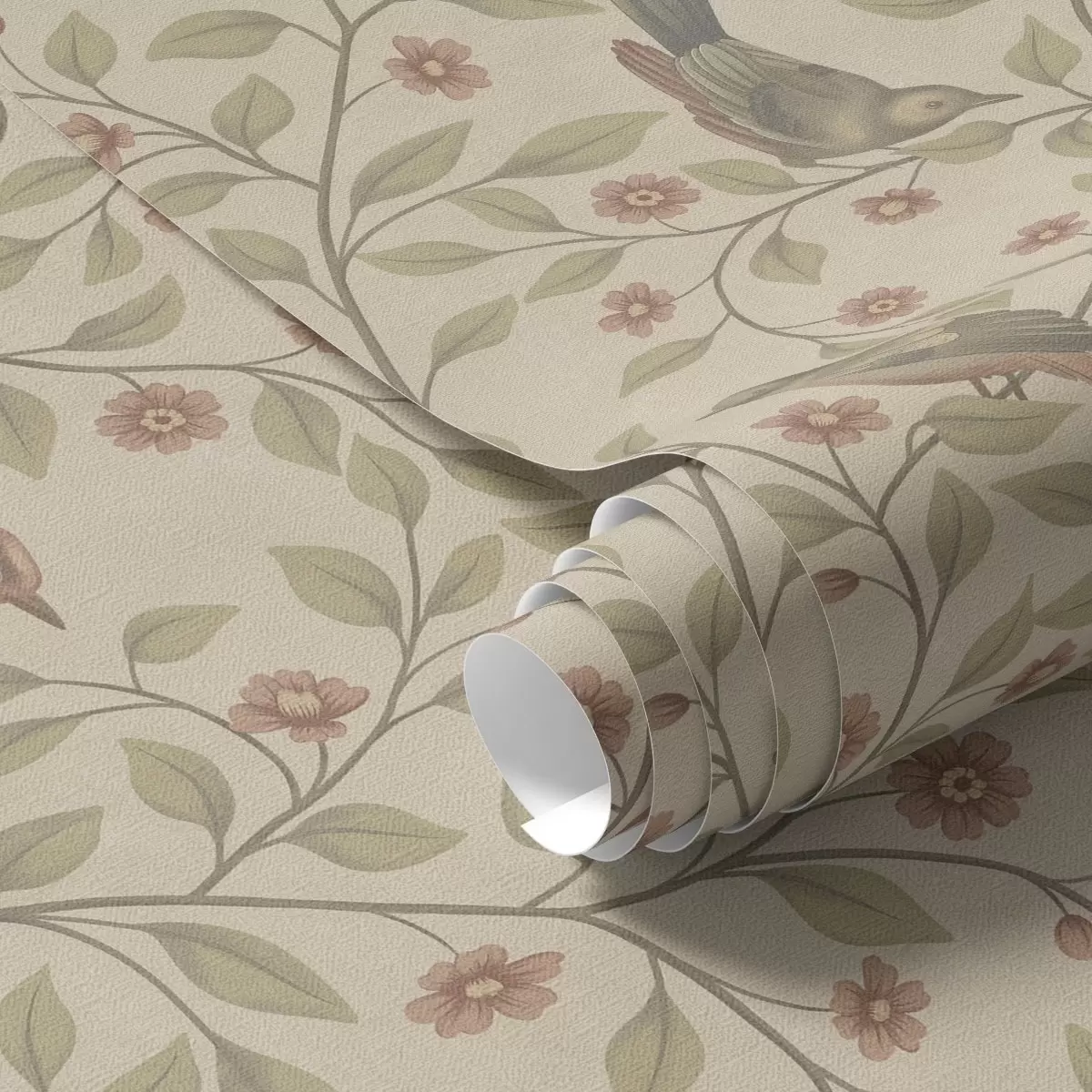 Tapete Vögel auf blühenden Zweigen, warmer beiger Hintergrund Nr. a00670