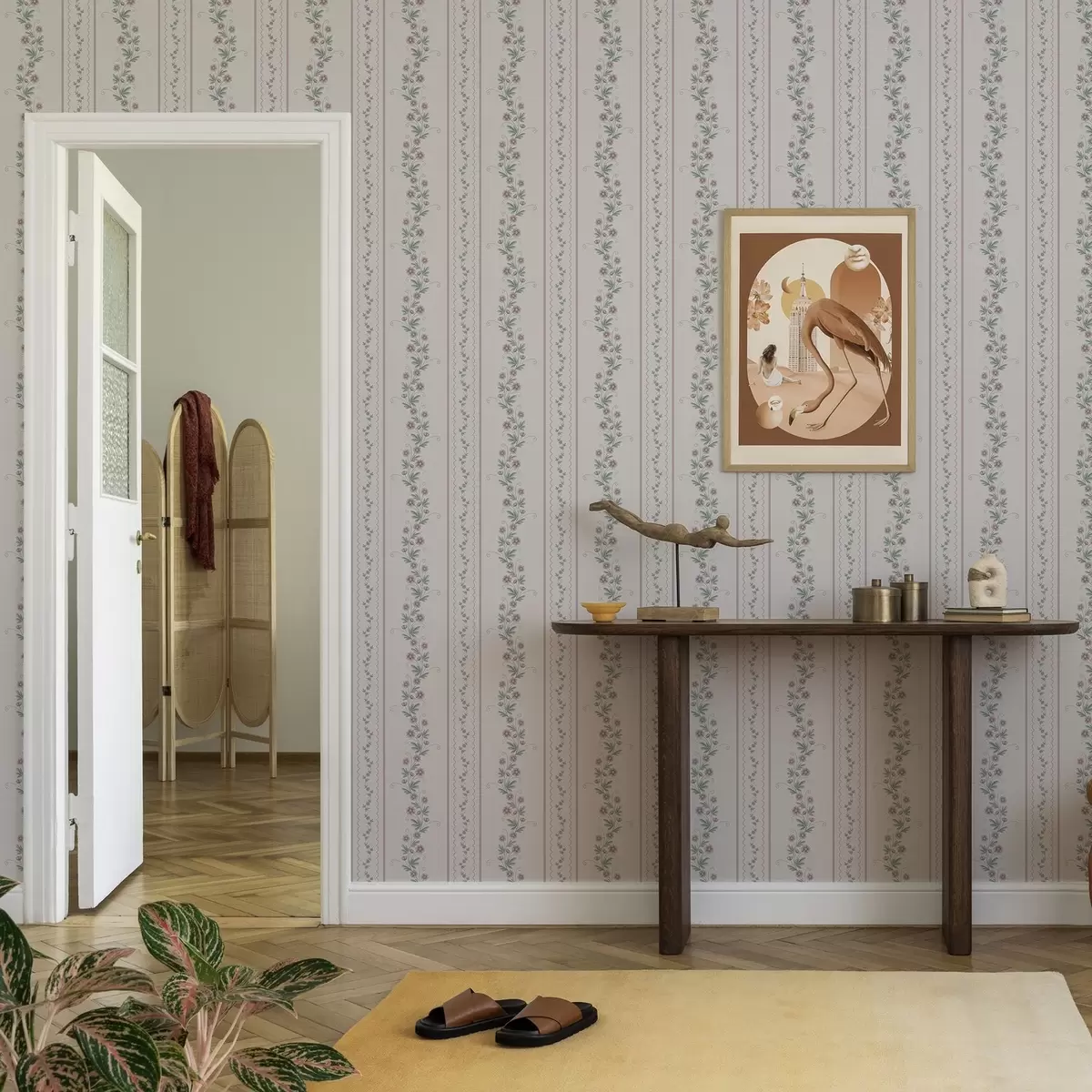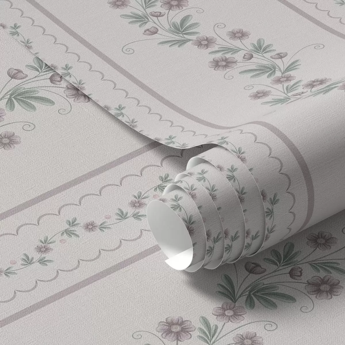 Tapete Zarte Streifen mit Lavendelblüten, Vintage Nr. a00671