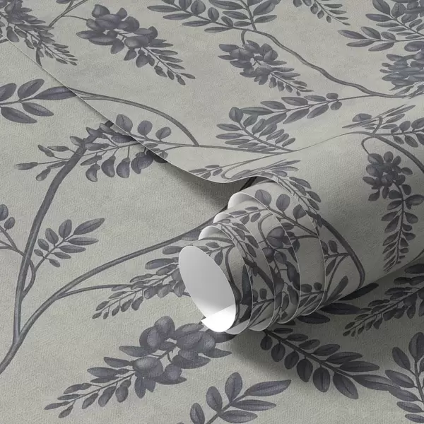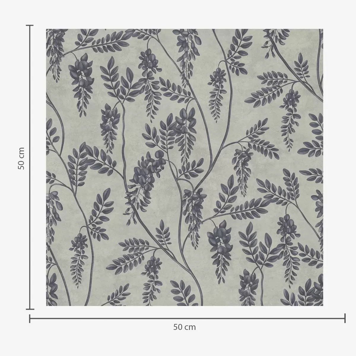 Tapete Zweige mit dunklen Blüten auf grau-beigem Hintergrund Nr. a00672