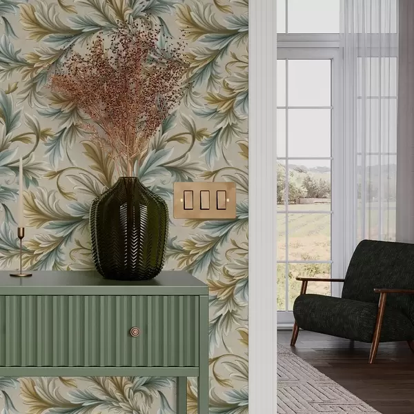 Tapete Voluminöse Blätter in Pastelltönen von Grün und Beige Nr. a00674