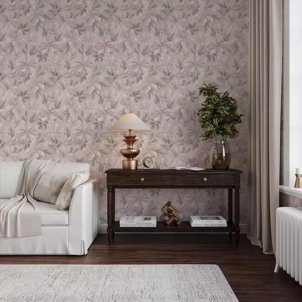 Tapete Rosa Blüten mit zarten Blättern auf einem sanften Hintergrund Nr. a00675