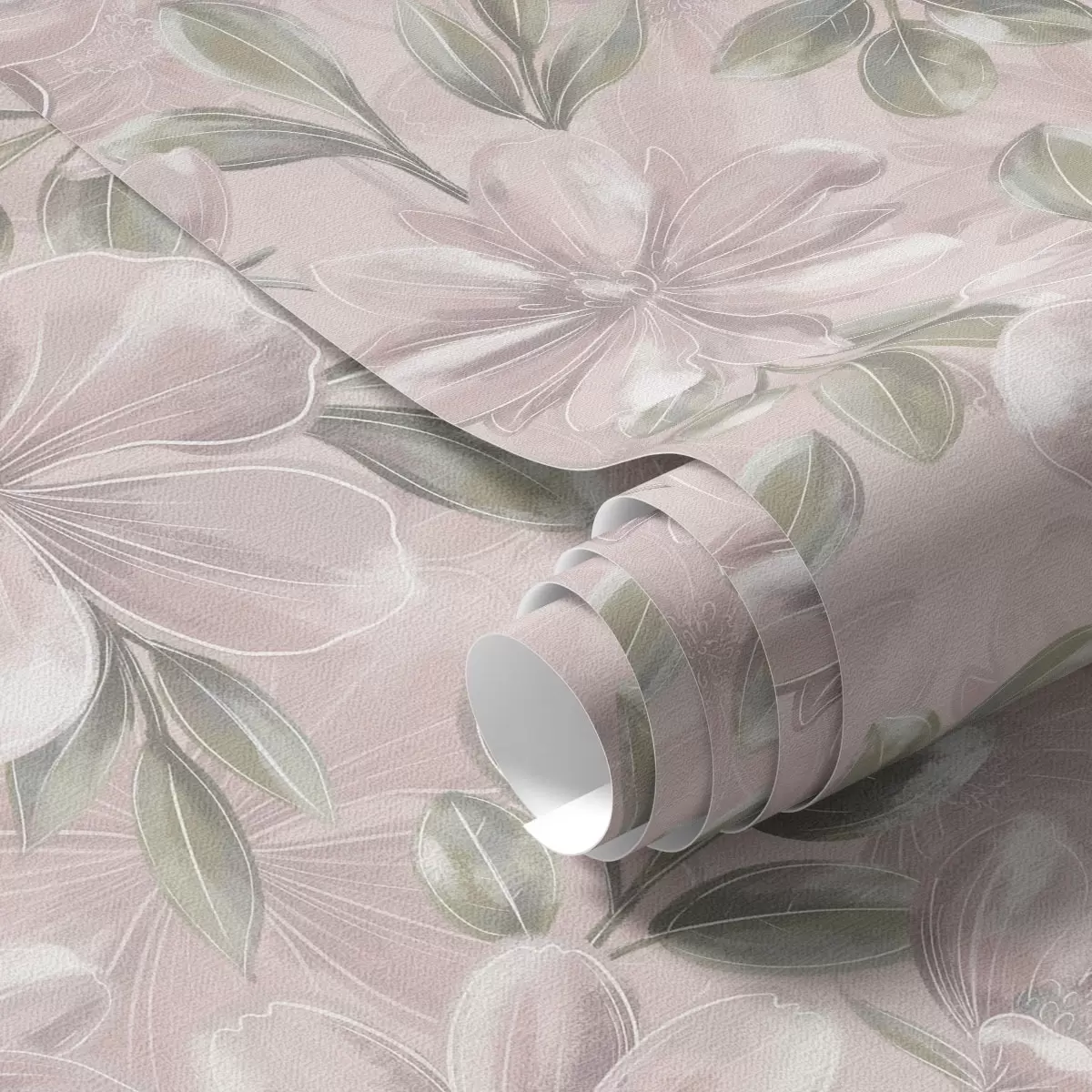 Tapete Rosa Blüten mit zarten Blättern auf einem sanften Hintergrund Nr. a00675