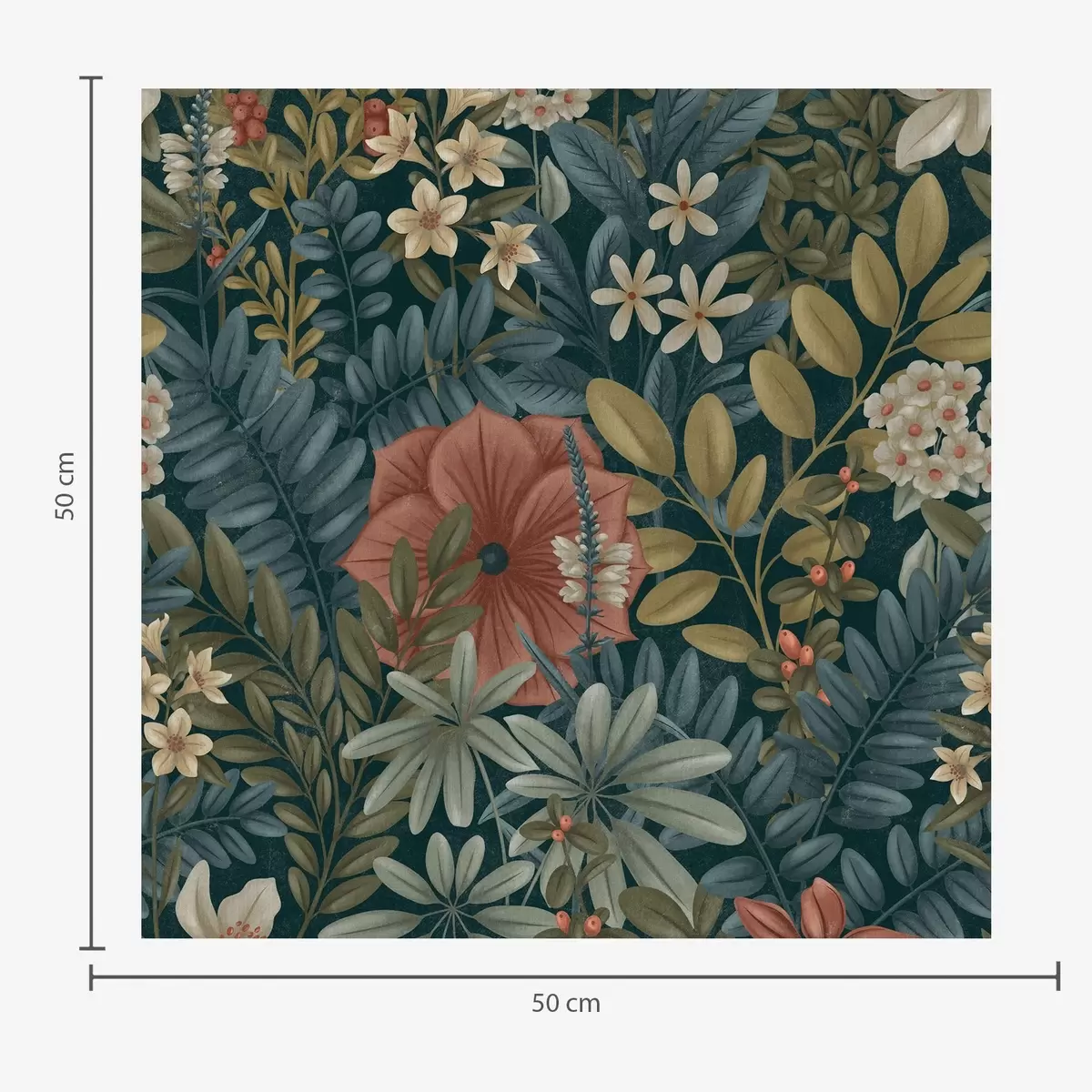 Tapete Dunkler Hintergrund mit dichten Blumen und Blättern in warmen Farbtönen Nr. a00678