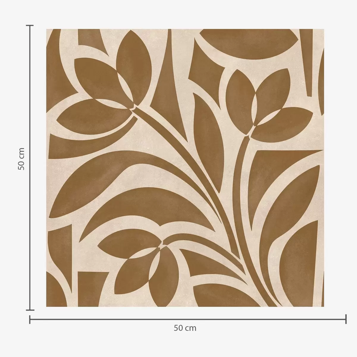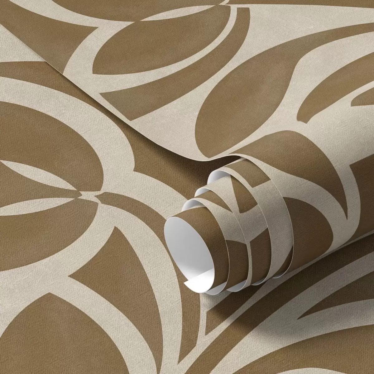 Tapete Geometrische Blattsilhouetten, karamellbraun auf Beige Nr. a00679