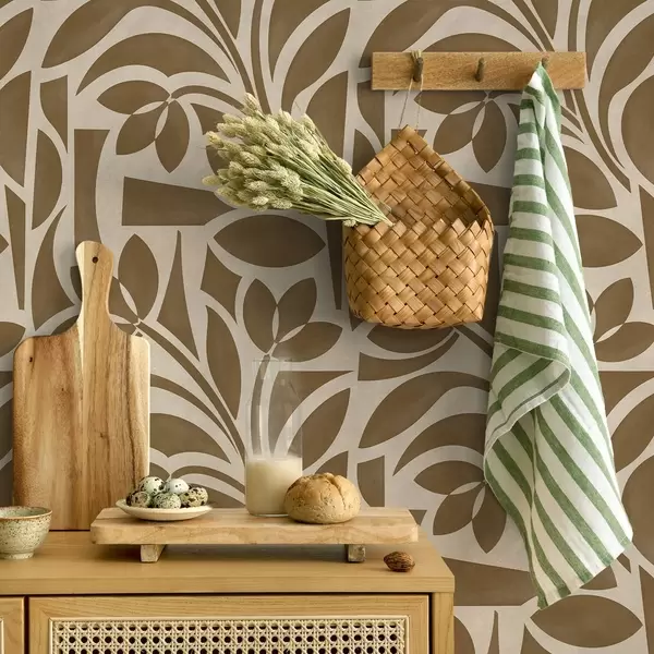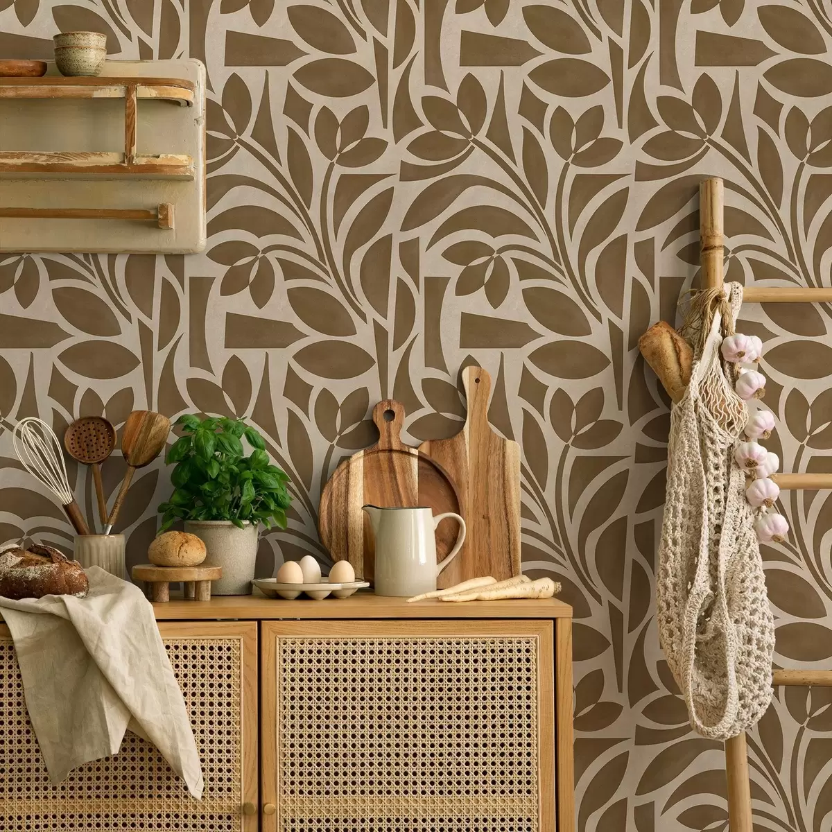 Tapete Geometrische Blattsilhouetten, karamellbraun auf Beige Nr. a00679