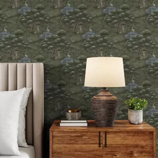 Tapete Waldlichtung mit Rehen, Kaninchen und Reihern Nr. a00680