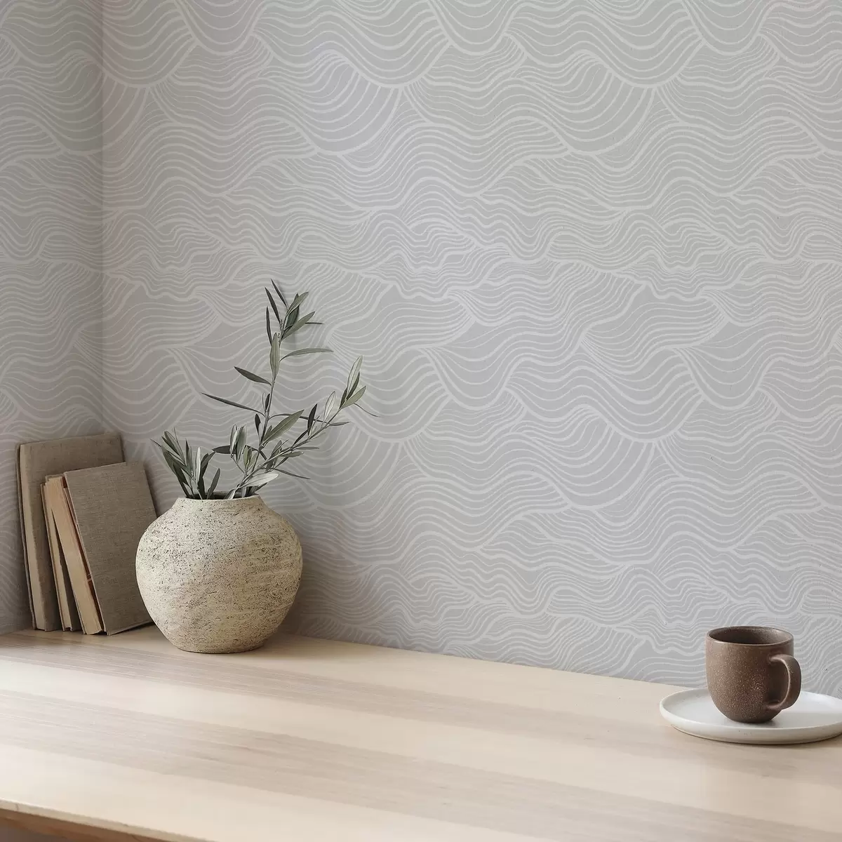 Tapete Wellenförmiges Ornament: helle Linien auf grauem Hintergrund Nr. a00681v2
