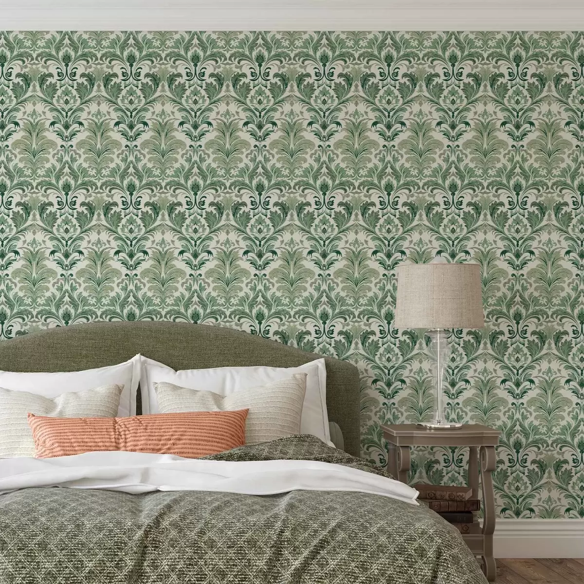 Tapete Grüner Damast mit erhabener Struktur auf hellem Hintergrund Nr. a00692