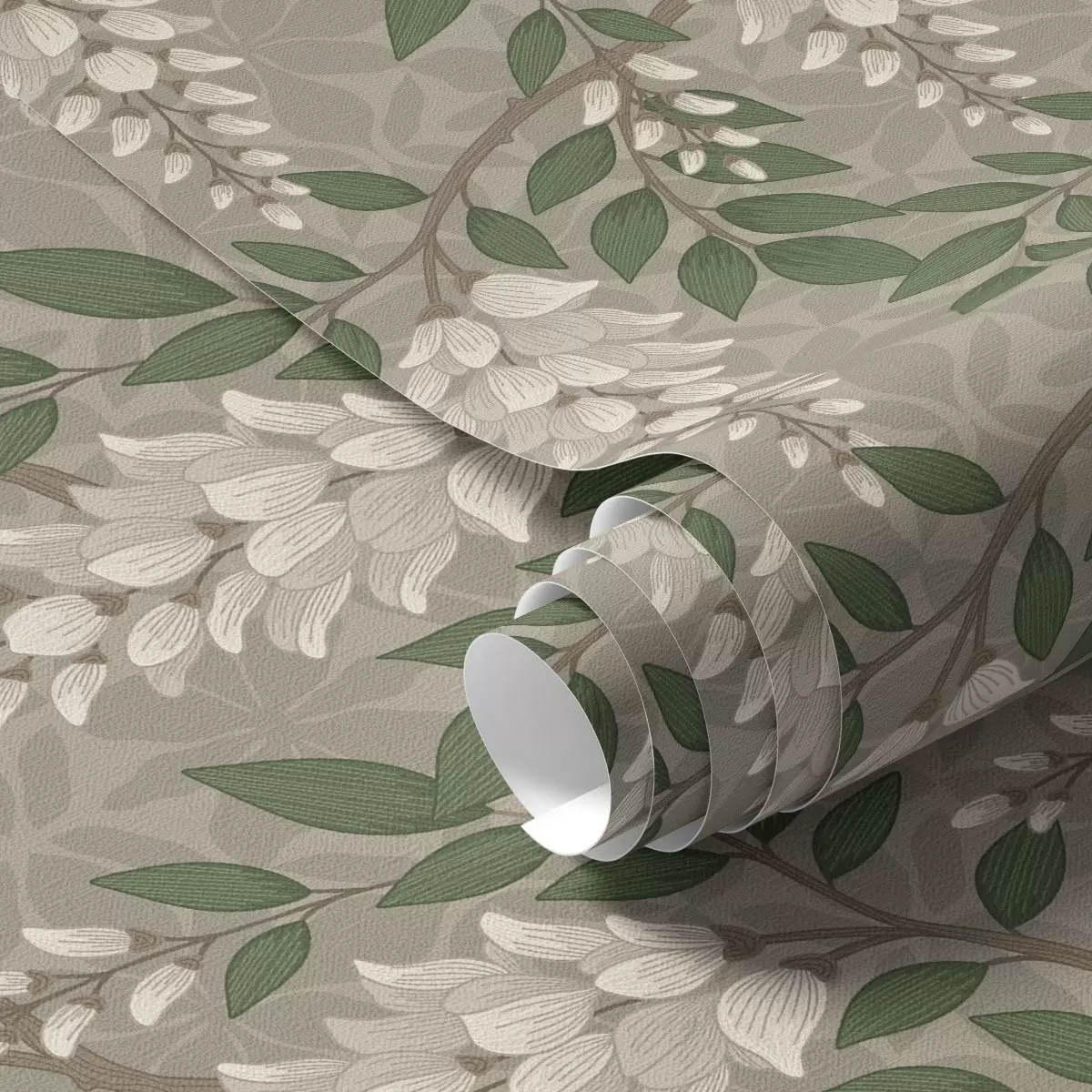 Tapete Helle Glyzinien auf grau-olivfarbenem Hintergrund, herabfallende Trauben Nr. a00694