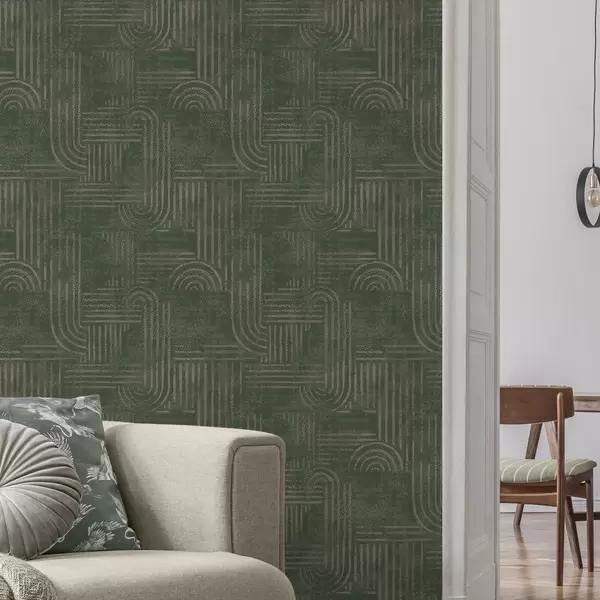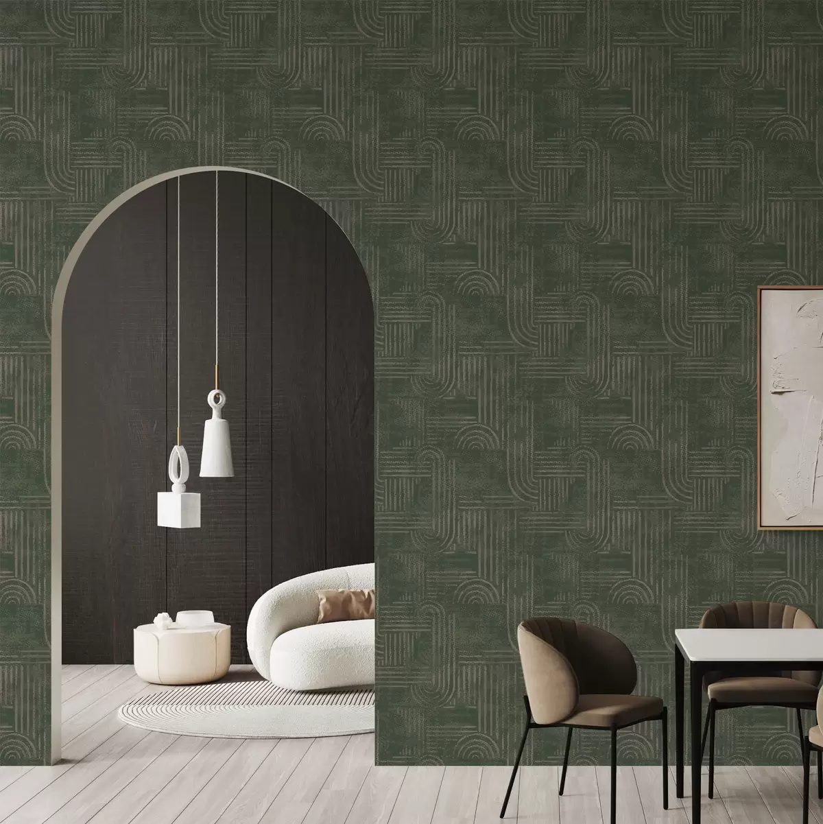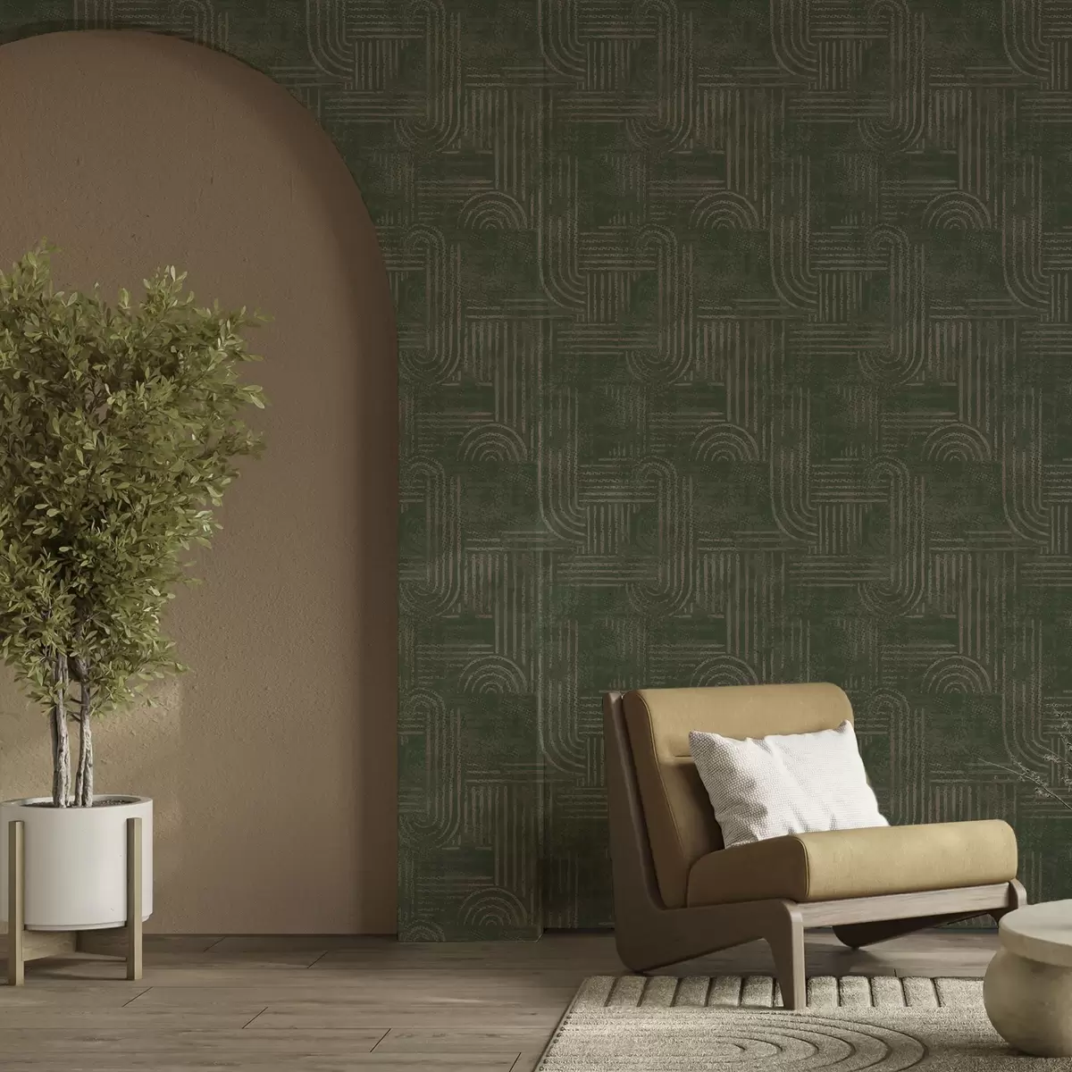 Tapete Geometrisches Muster mit Bögen in einer grünen Farbpalette Nr. a00697