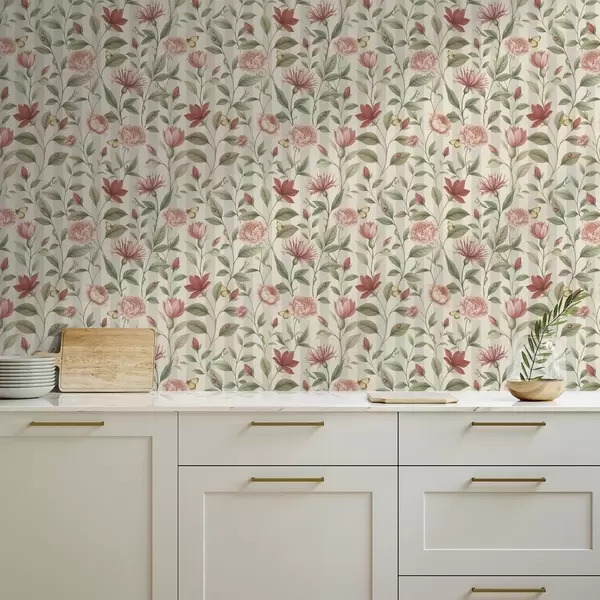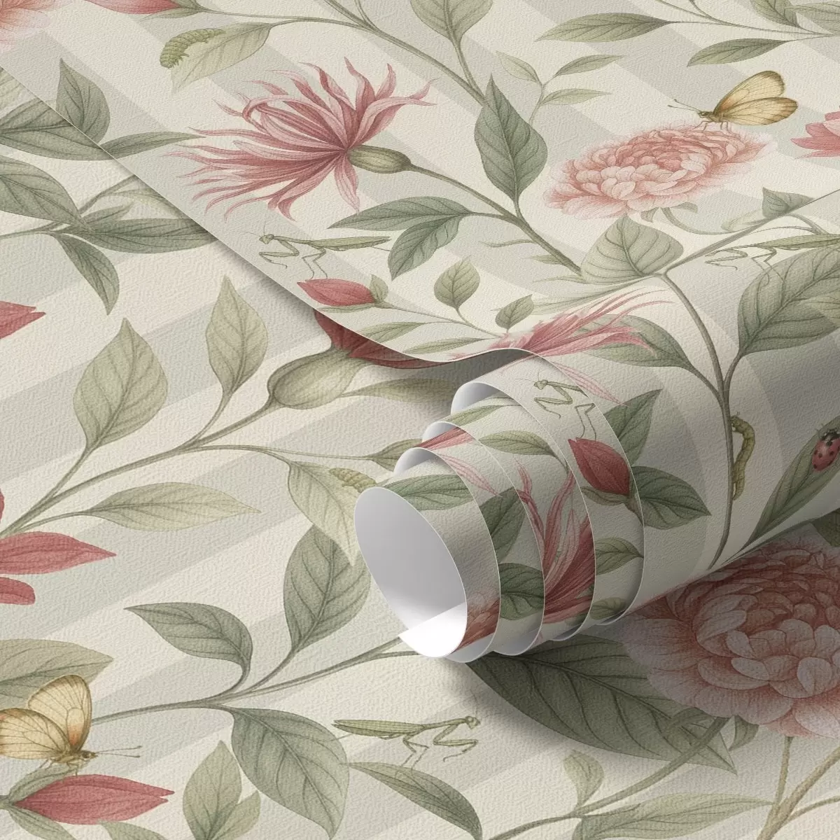 Tapete Blumenstiele mit Schmetterlingen auf hellem Hintergrund Nr. a00698