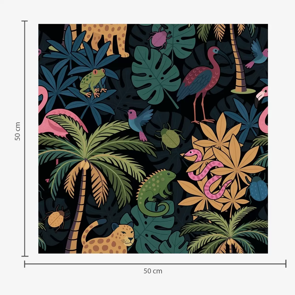 Tapete Leuchtende tropische Tiere zwischen Blättern auf dunklem Hintergrund Nr. a00701
