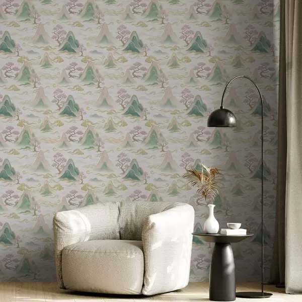 Tapete Berge, Wolken und Kiefern im orientalischen Dekorationsstil Nr. a00703