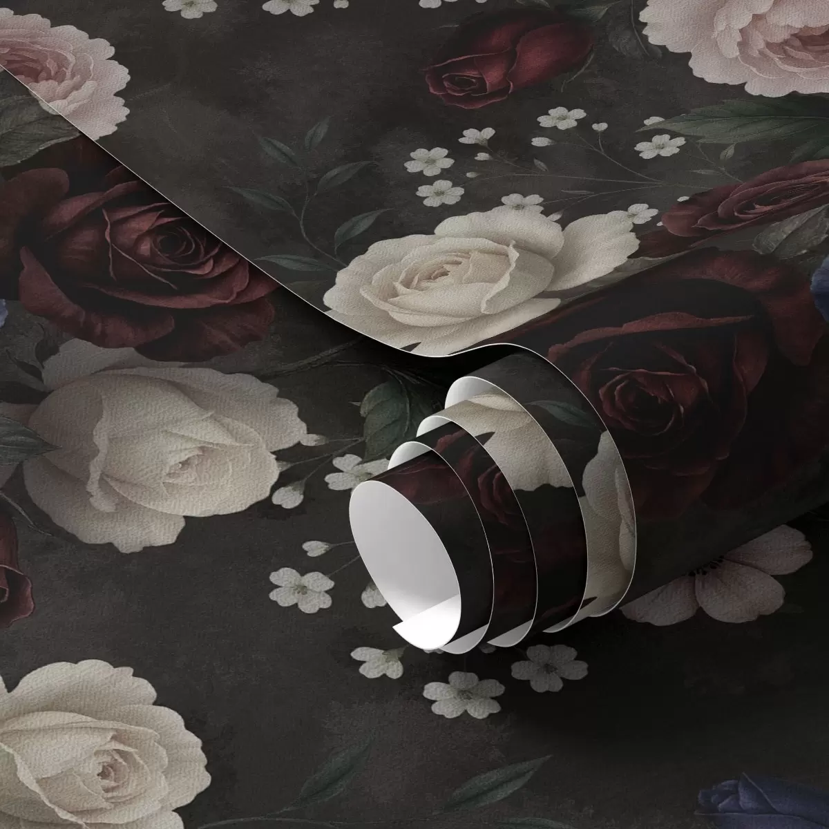 Tapete Dunkle Rosen, Anemonen und Pfingstrosen vor einem dunklen Hintergrund Nr. a00704