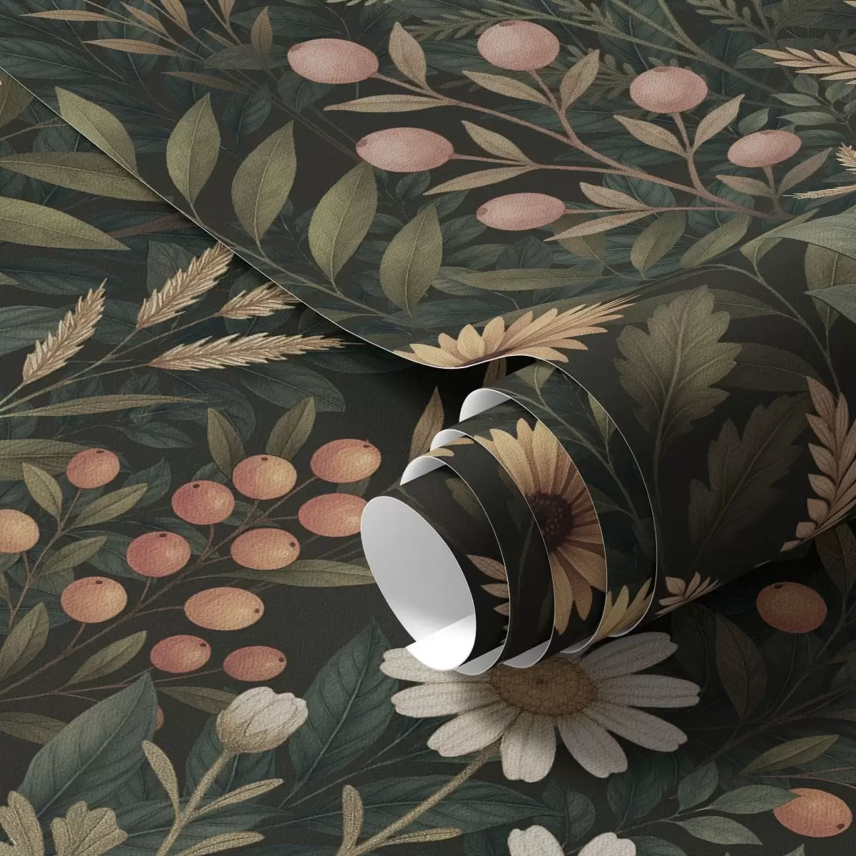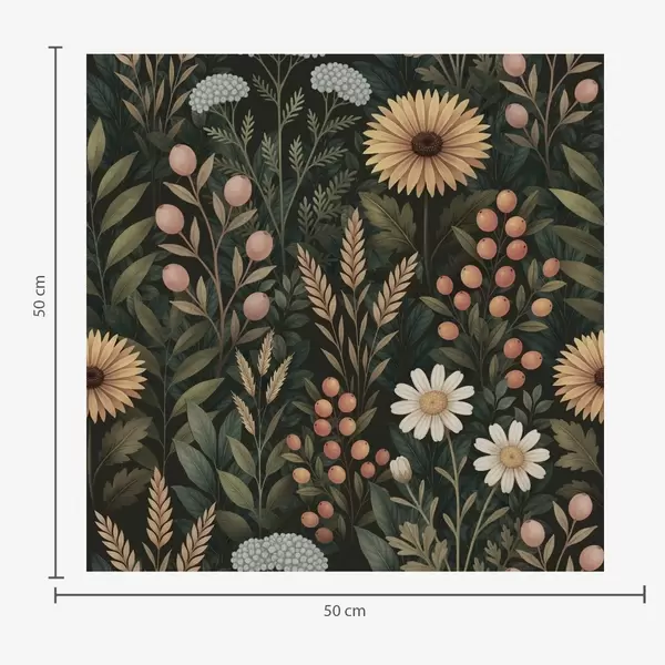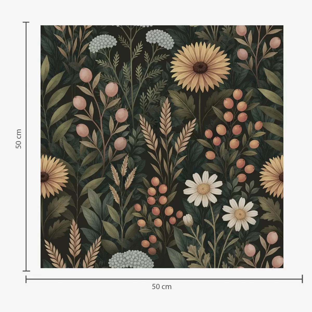 Tapete Wildblumen und Beeren auf dunklem Hintergrund, natürliches Ornament Nr. a00707
