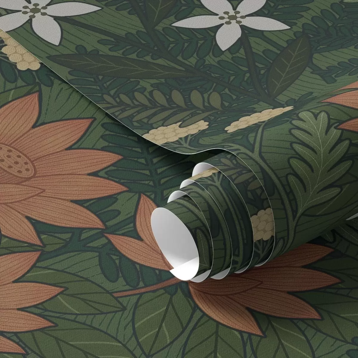 Tapete Große Blumen zwischen grünem Laub, dekorative Komposition Nr. a00708