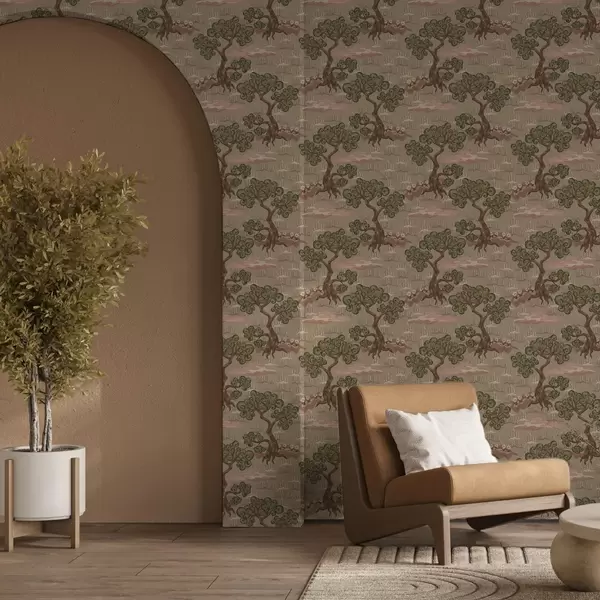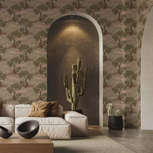 Tapete Östliche Landschaft mit skurrilen Bäumen auf sandigem Hintergrund Nr. a00715