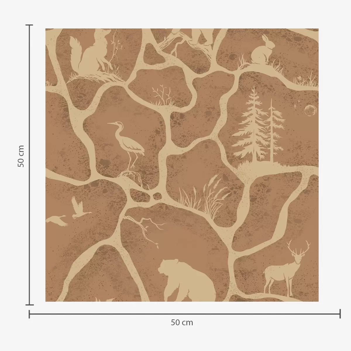Tapete Silhouetten von Tieren und Bäumen in einer natürlichen Landschaft mit Steinstruktur Nr. a00727