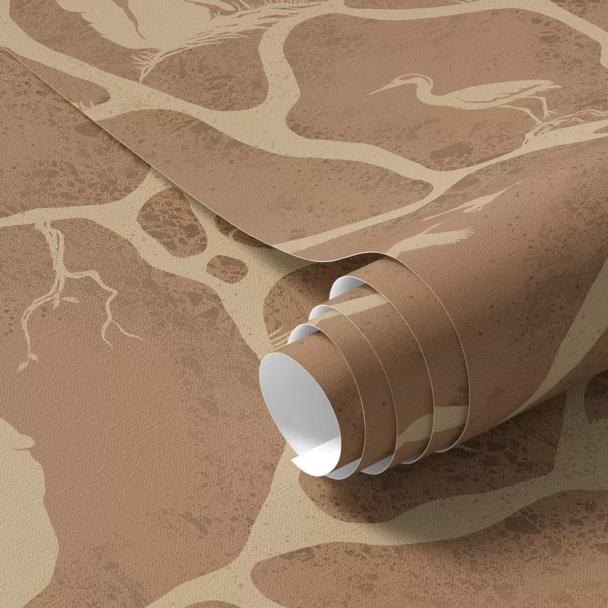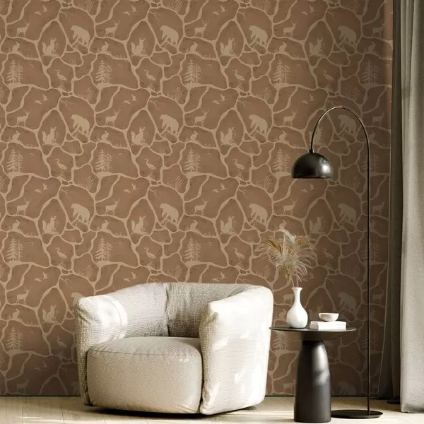 Tapete Silhouetten von Tieren und Bäumen in einer natürlichen Landschaft mit Steinstruktur Nr. a00727
