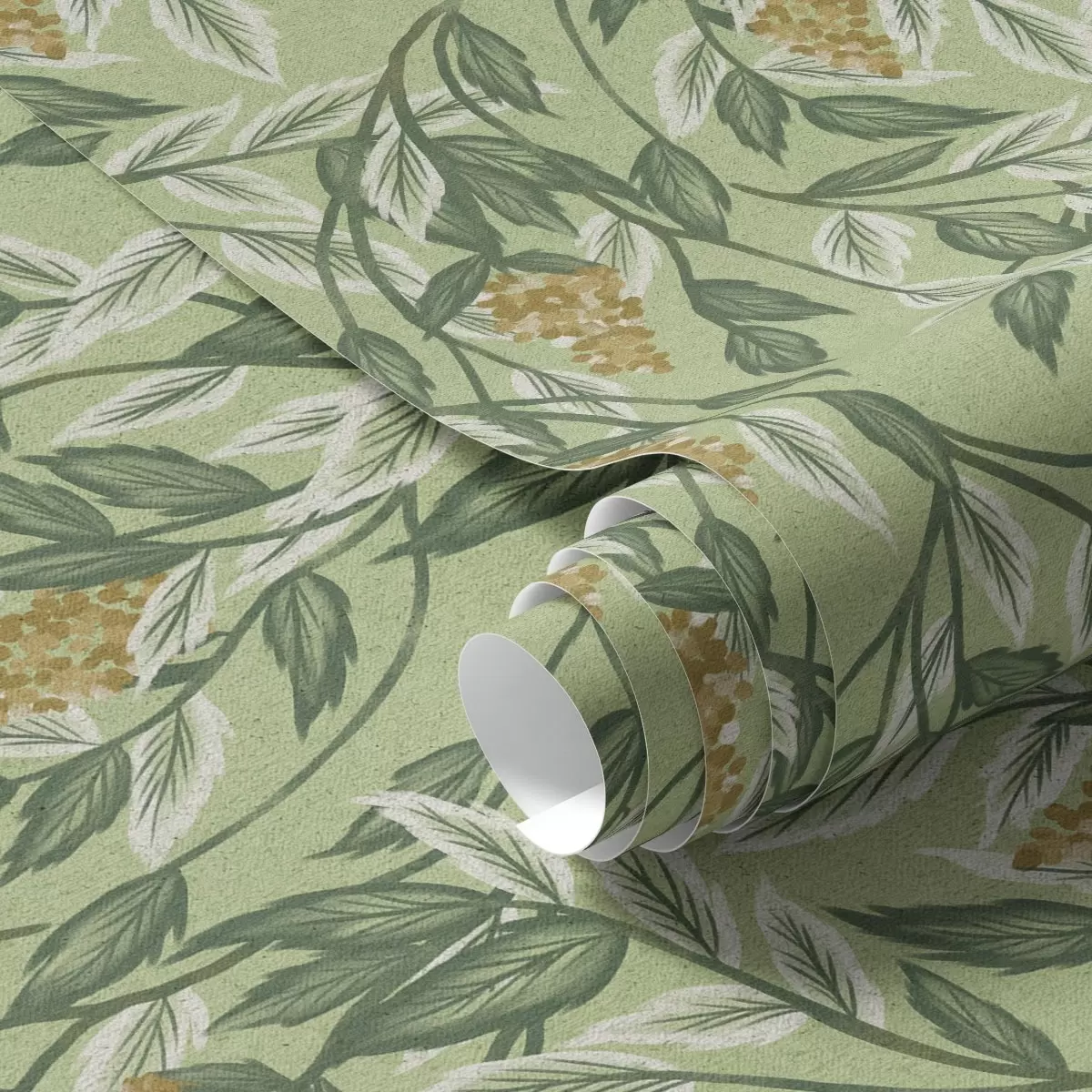 Tapete Zweige mit Beerenbüscheln auf grünem Hintergrund Nr. a00734
