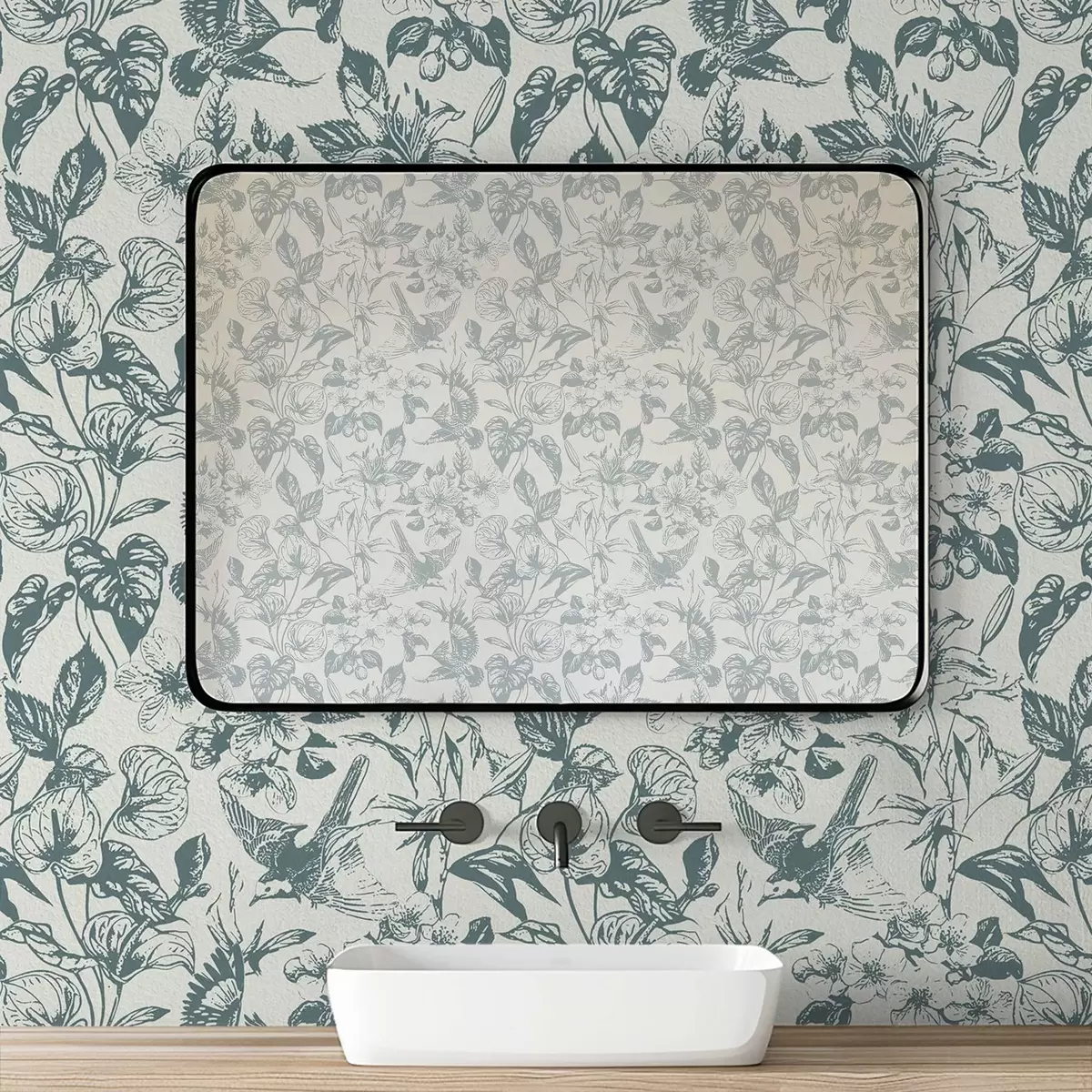 Tapete Monochromes Blumenornament mit Vögeln Nr. a00737