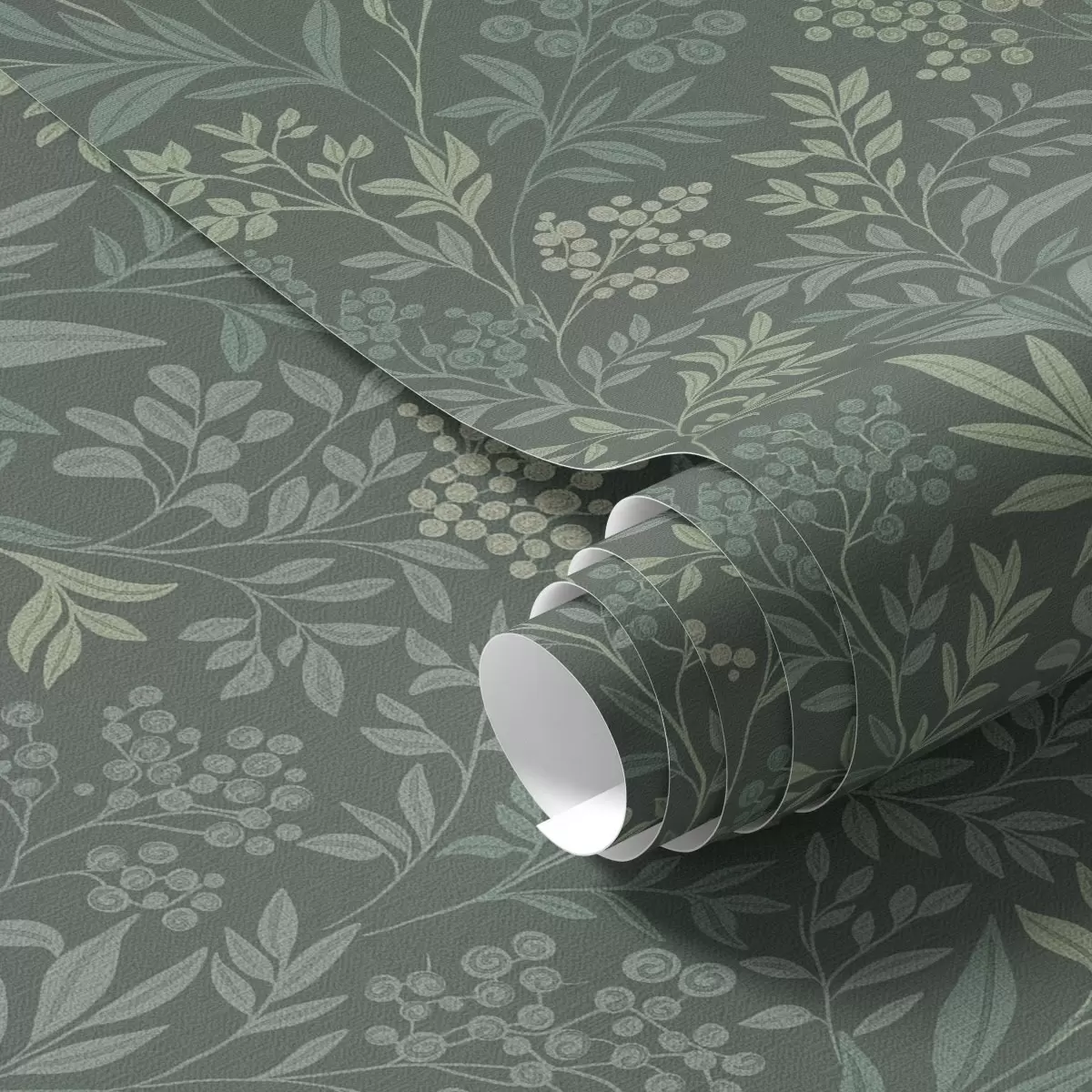 Tapete Smaragdgrüne Gräser und Beeren, feines botanisches Muster Nr. a00740