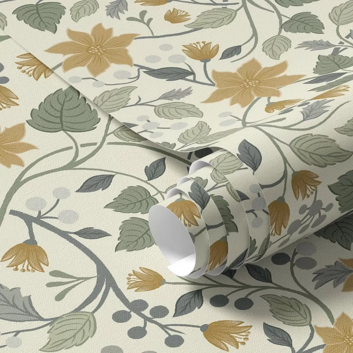 Tapete Kletternde Blütenzweige mit gelben Blüten und Beeren Nr. a00750