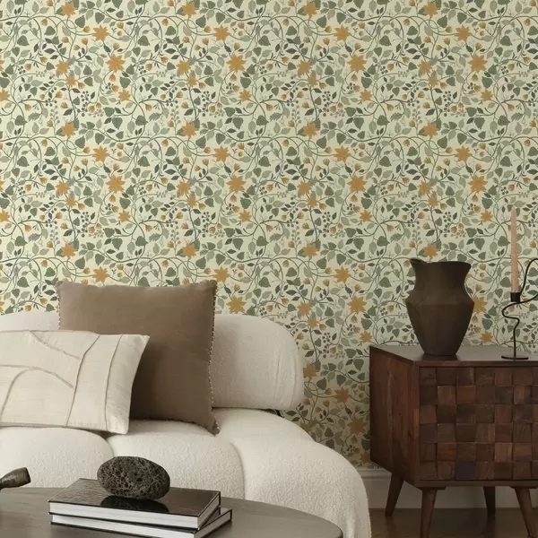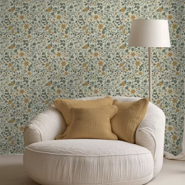 Tapete Kletternde Blütenzweige mit gelben Blüten und Beeren Nr. a00750