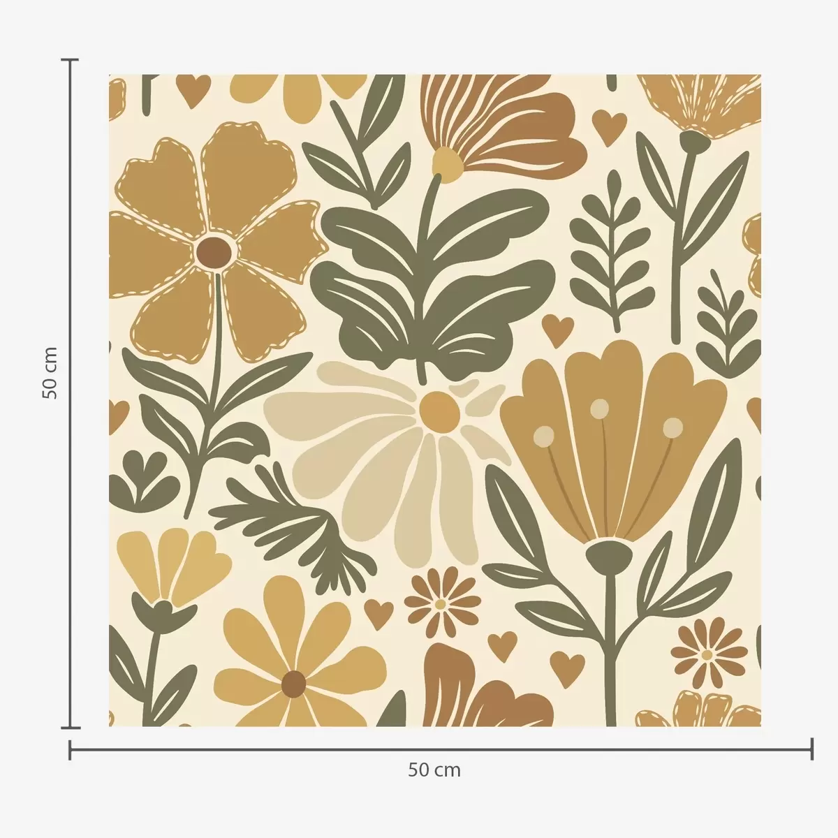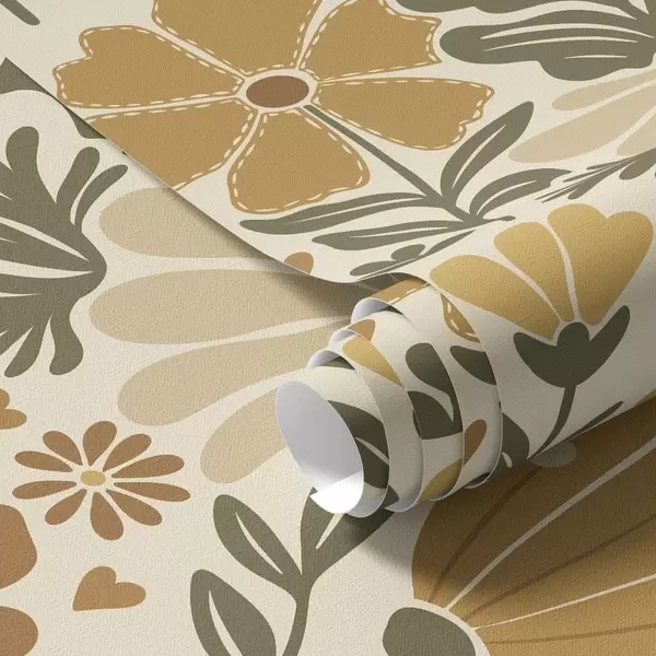 Tapete Stilisierte Blumen in warmen Farbtönen mit Herzen Nr. a00752