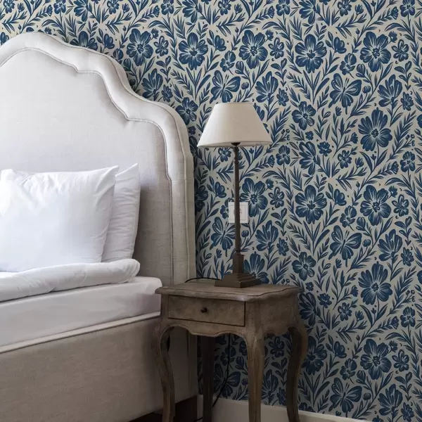 Tapete Blaues Blumenornament mit Schmetterlingen Nr. a00758