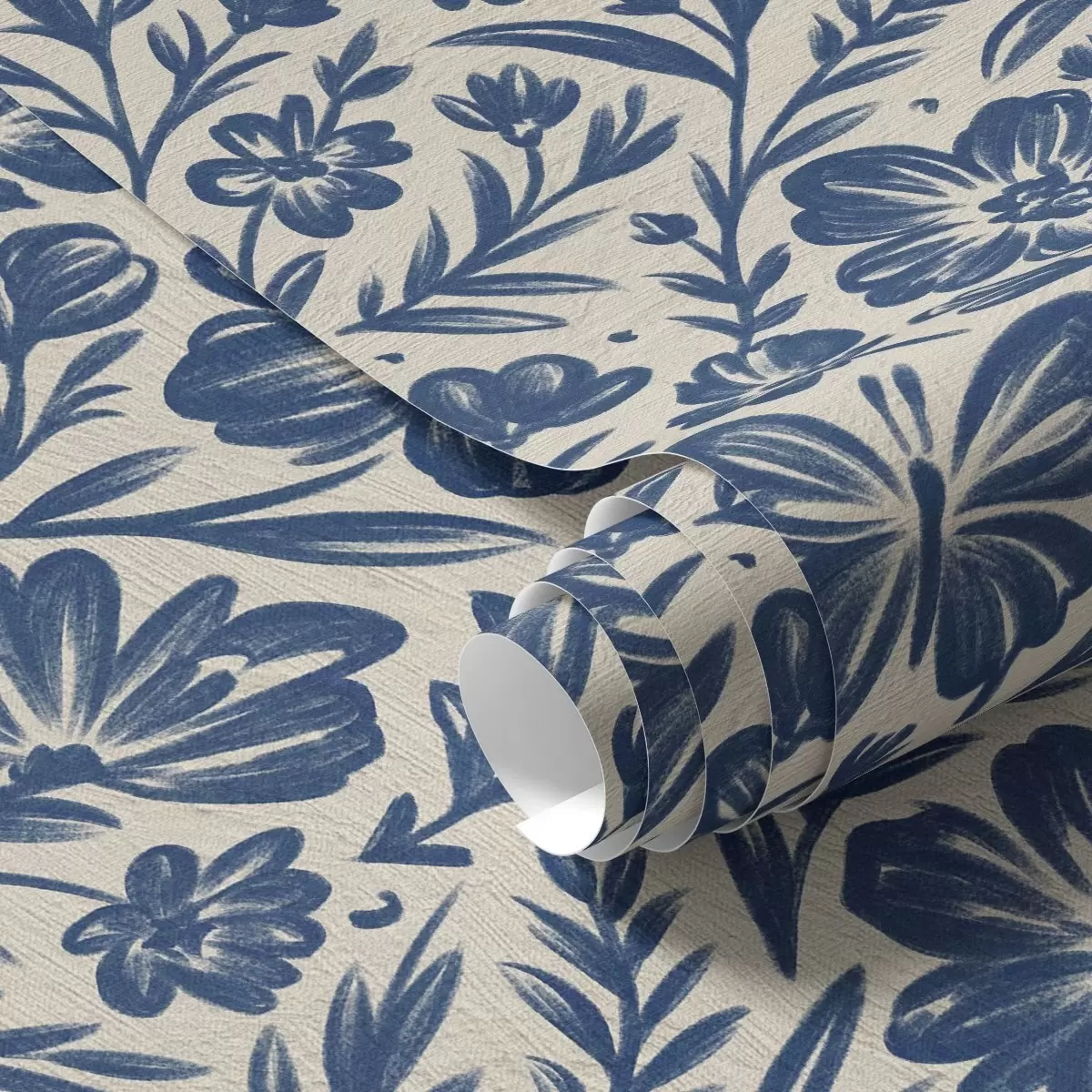 Tapete Blaues Blumenornament mit Schmetterlingen Nr. a00758