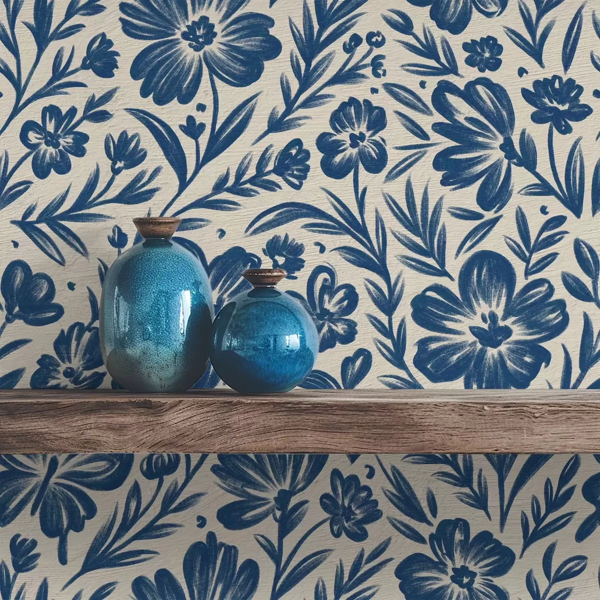 Tapete Blaues Blumenornament mit Schmetterlingen Nr. a00758