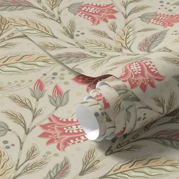 Tapete Kleine Blüten mit Glöckchen in rosa-grüner Farbpalette Nr. a00760