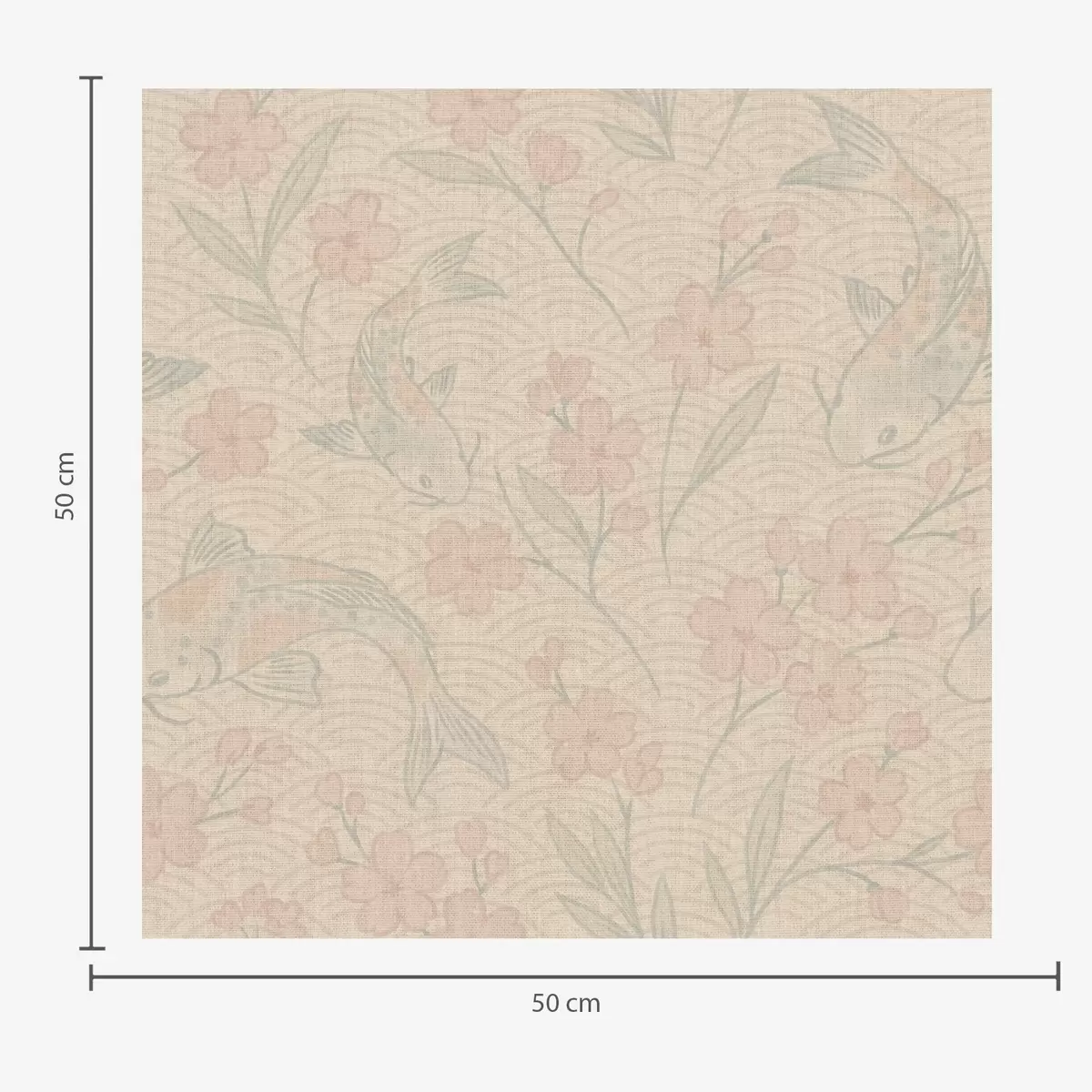 Tapete Karpfen zwischen Blumen in sanften Beige- und Rosatönen Nr. a00766