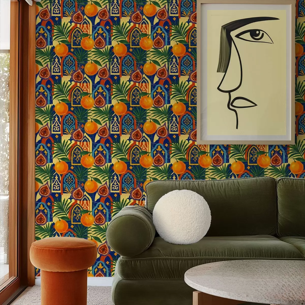Tapete Leuchtende Orangen, Palmblätter und marokkanische Bögen Nr. a00767