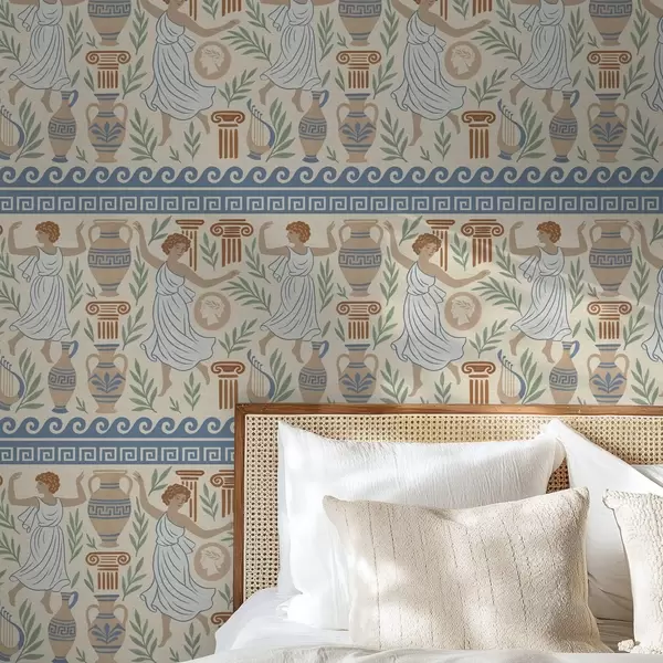 Tapete Antikes griechisches Ornament mit Figuren, Vasen und Säulen Nr. a00768